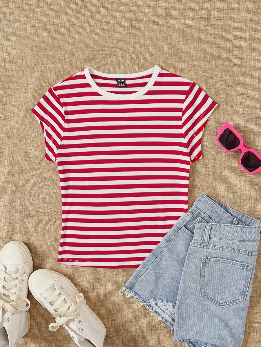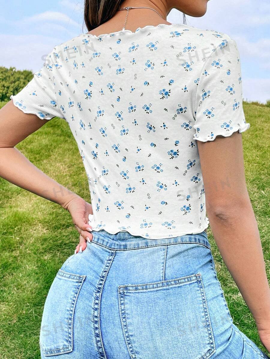Camiseta crop con estampado floral ribete en forma de lechuga