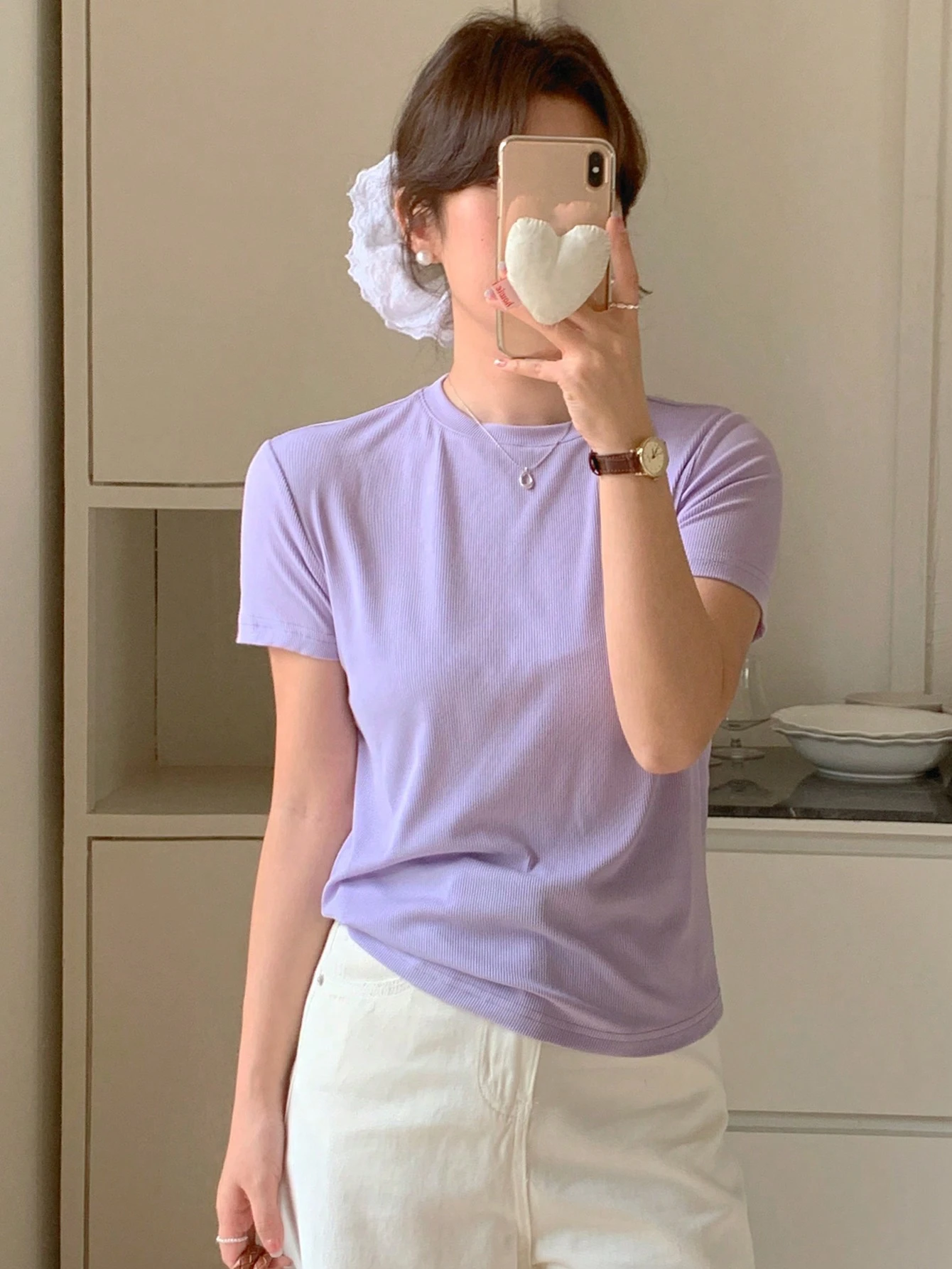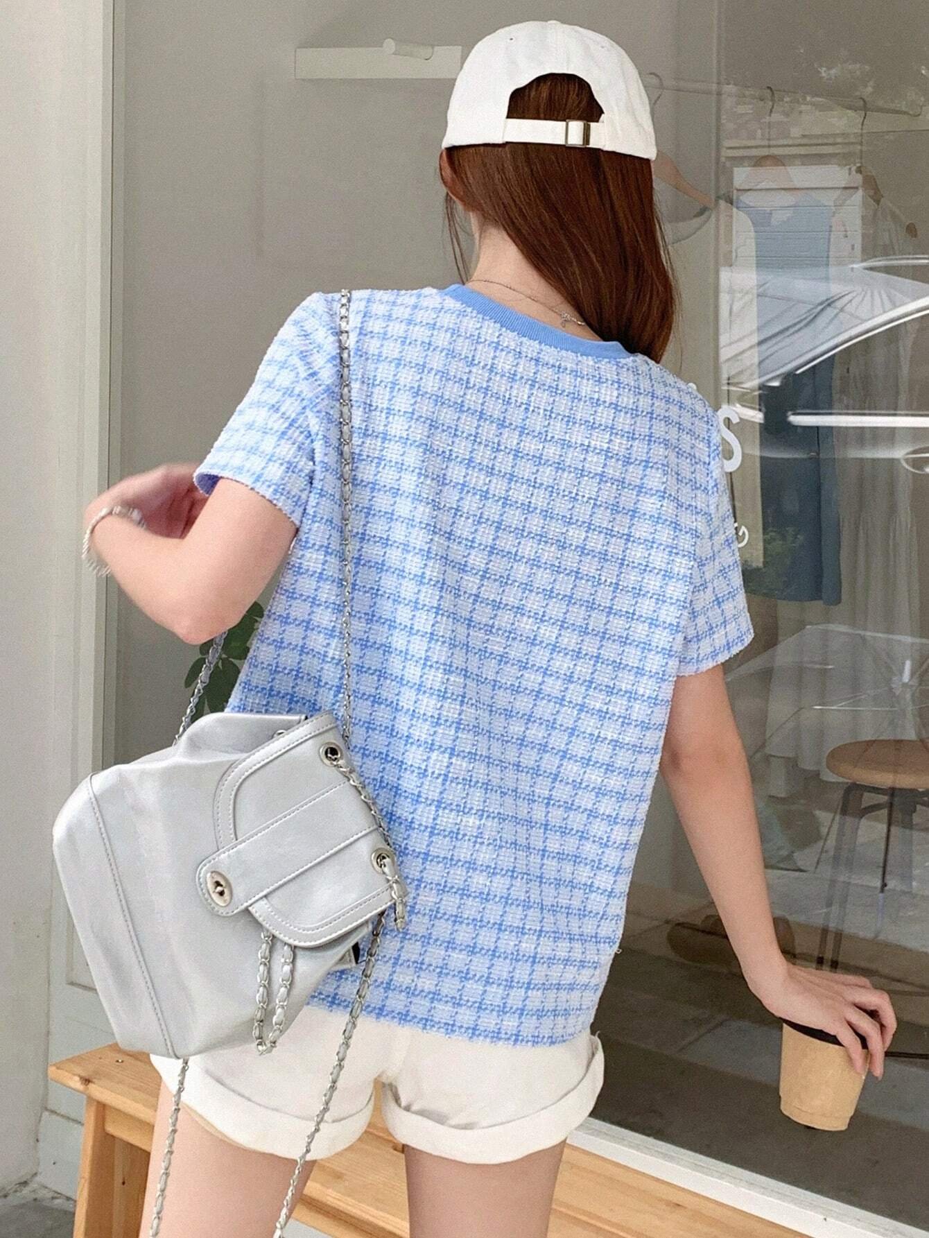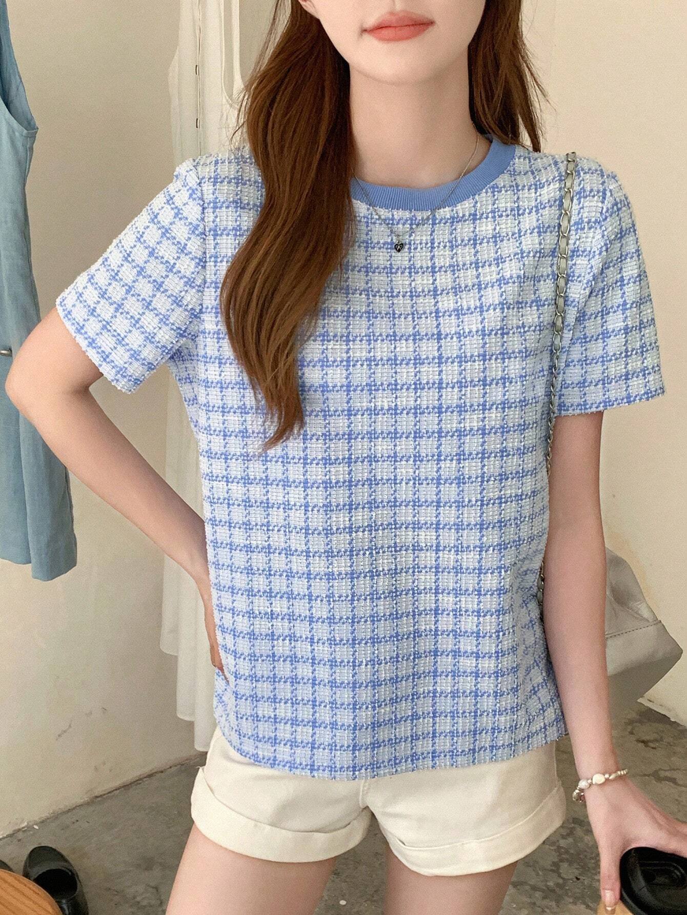 Camiseta de cuello redondo con estampado de cuadros