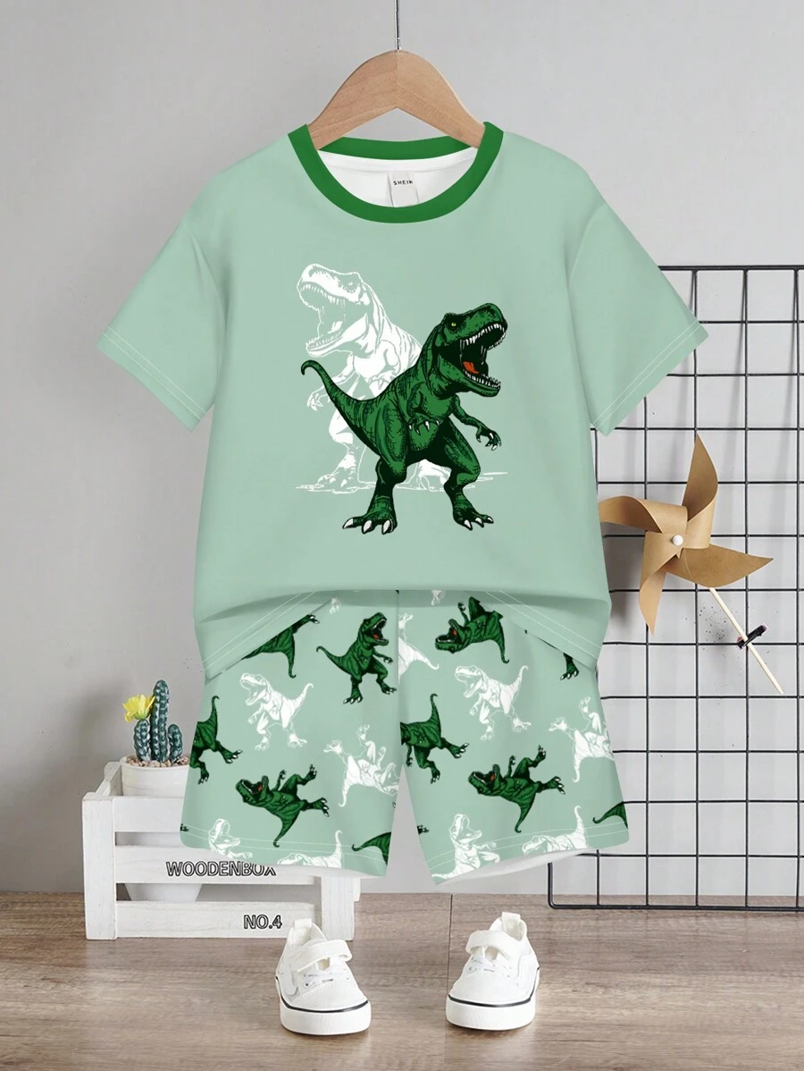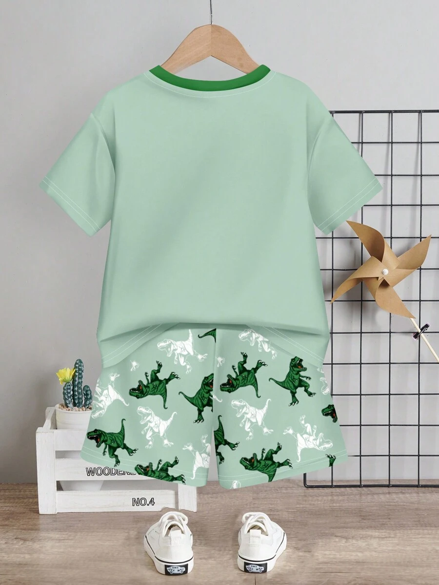 camiseta de cuello redondo con estampado gráfico de dinosaurio y pantalones cortos