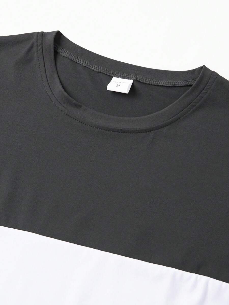 Camiseta de cuello redondo de manga corta, colorblock de verano