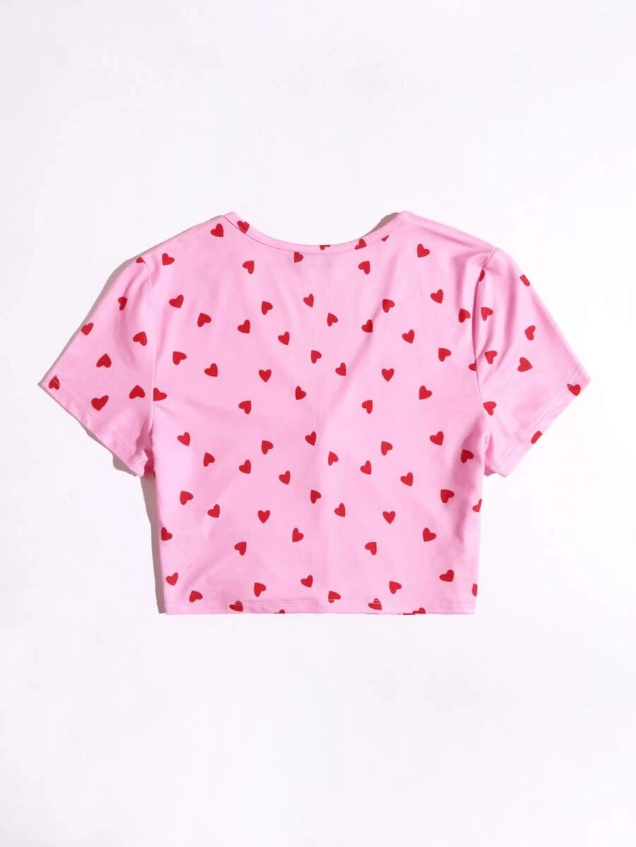 Camiseta De Estampado Completo De Corazones