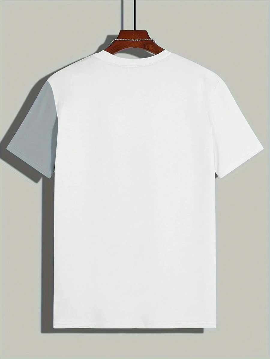 Camiseta De Hombre De Manga Corta Con Cuello Redondo Y Bloque De Color