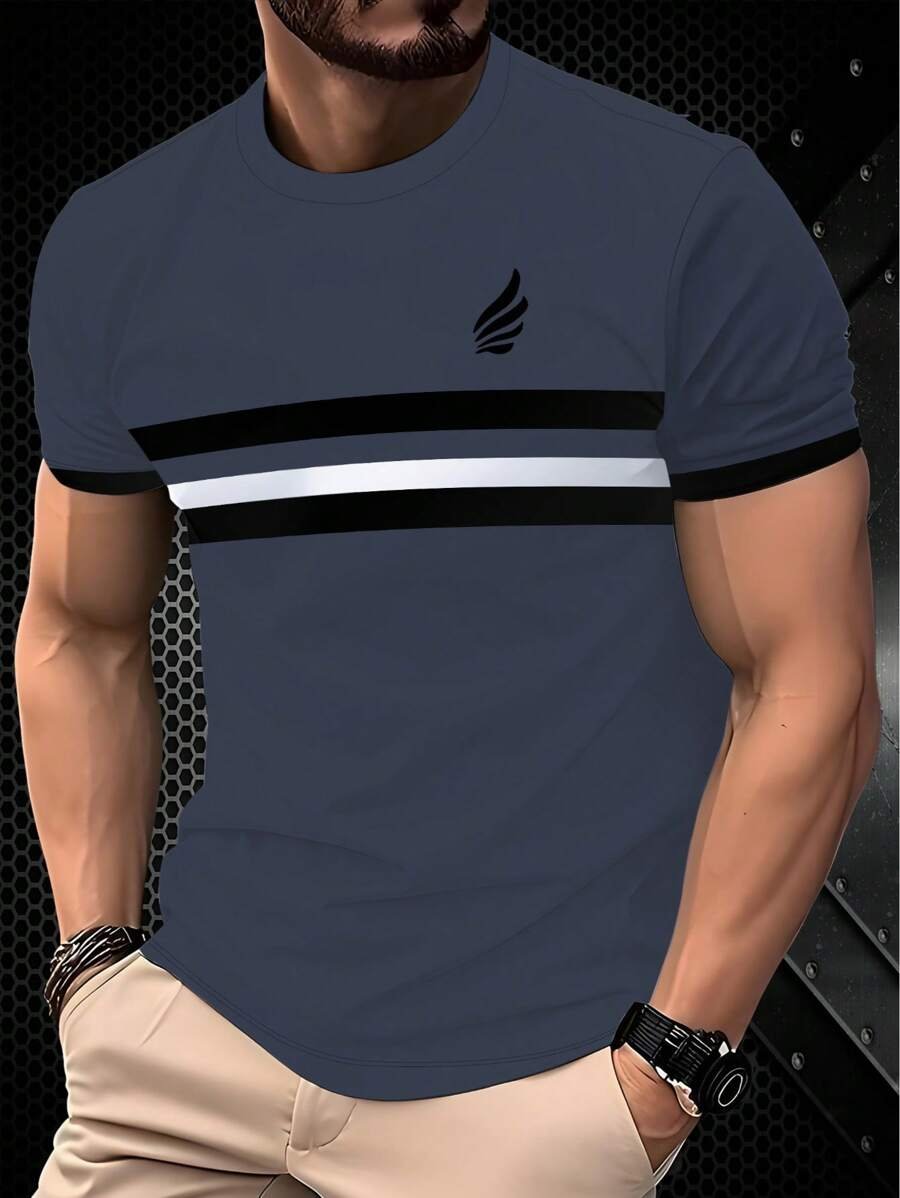 Camiseta de hombre de manga corta de cuello redondo a rayas