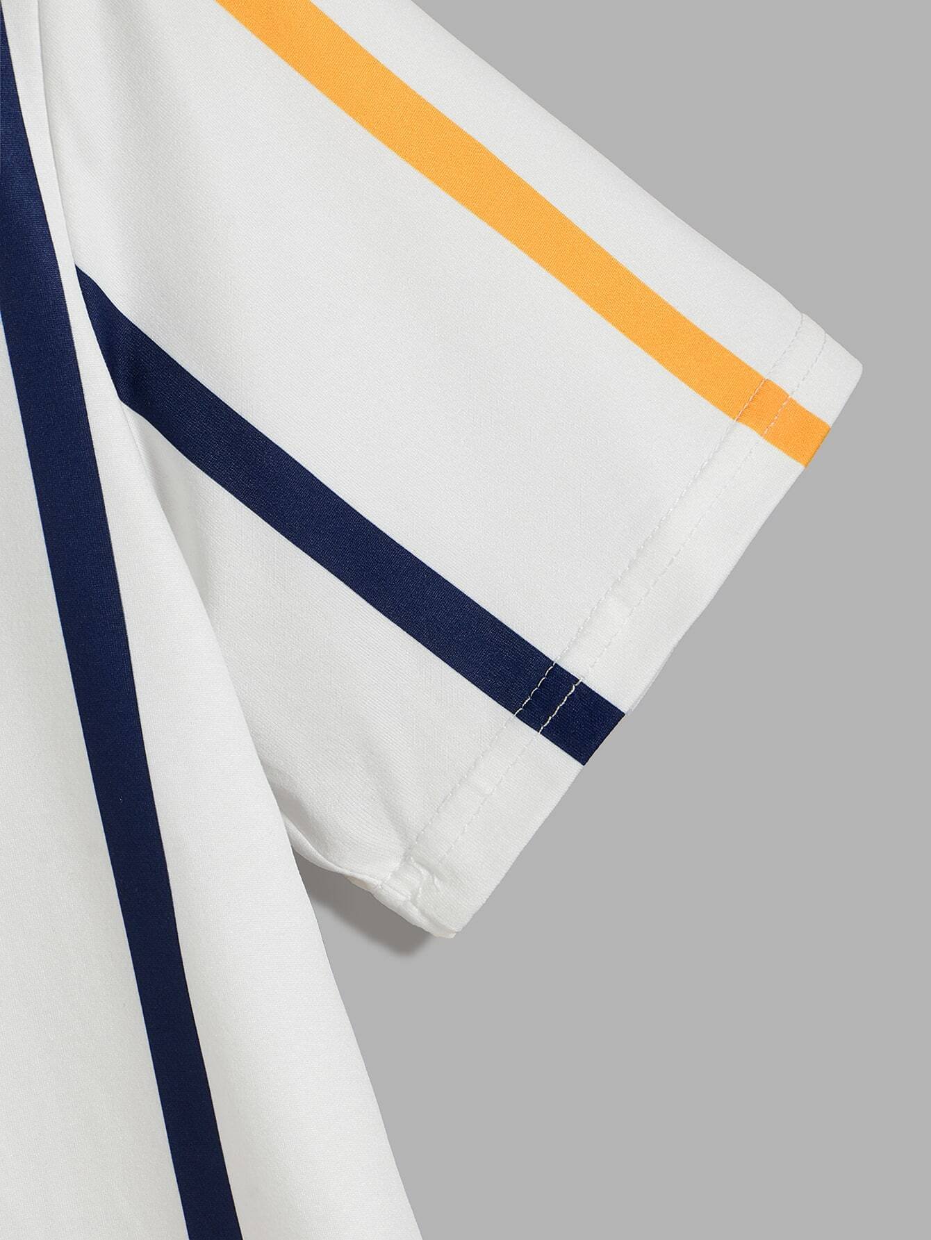 Camiseta de hombres de rayas de cuello redondo