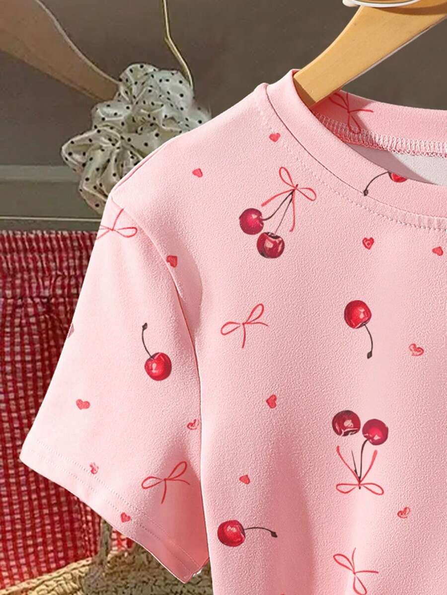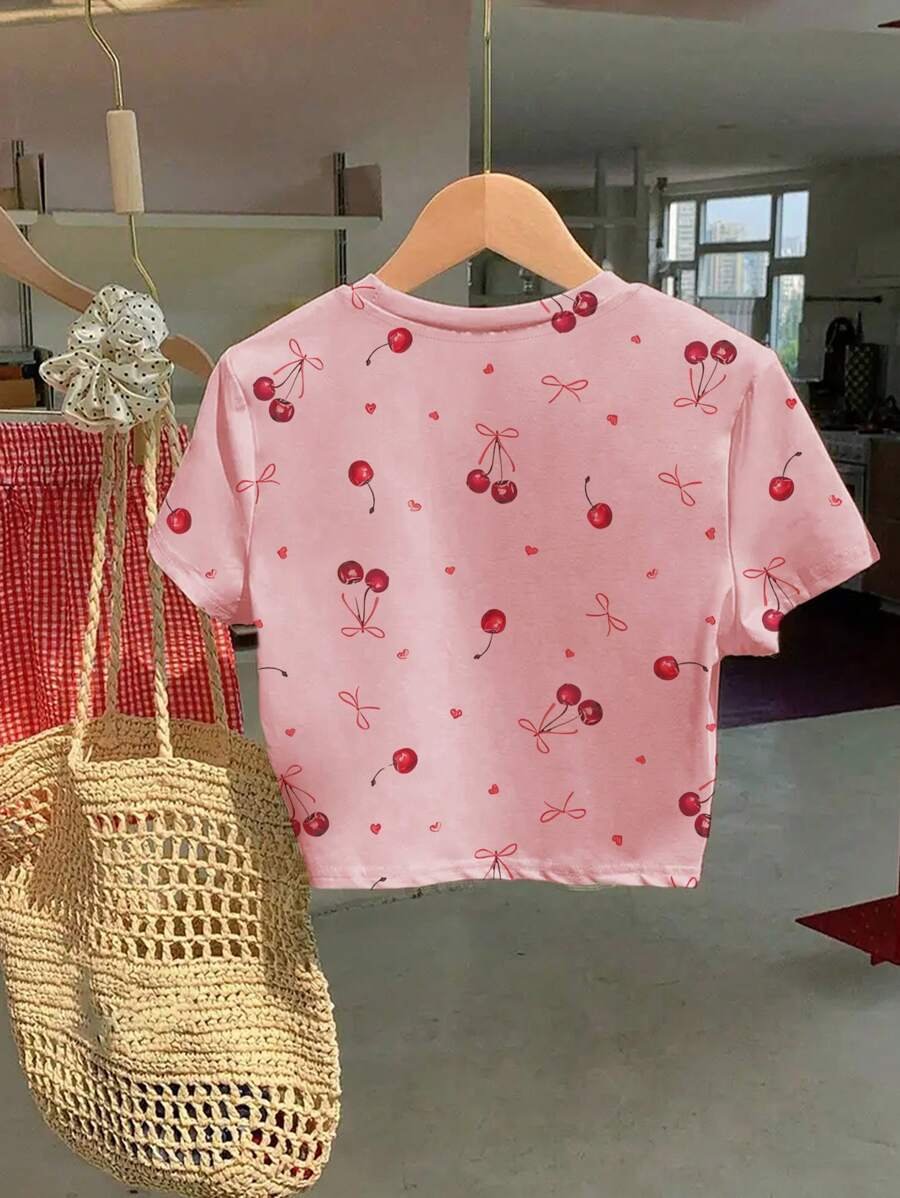 Camiseta de manga corta ajustada con estampado digital de cerezas