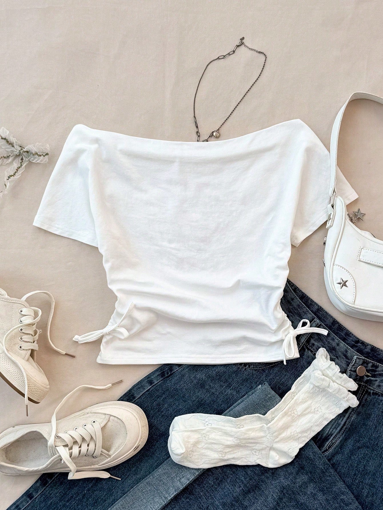 Camiseta de manga corta con cuello hombros descubiertos