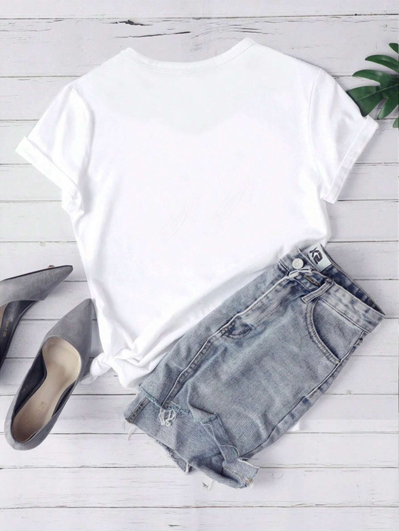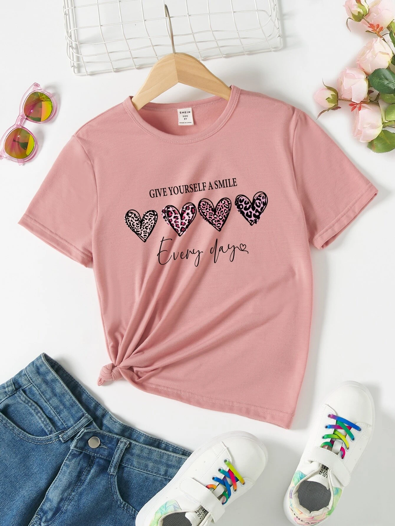 Camiseta De Manga Corta Con Cuello Redondo Y Estampado De Coraz?n