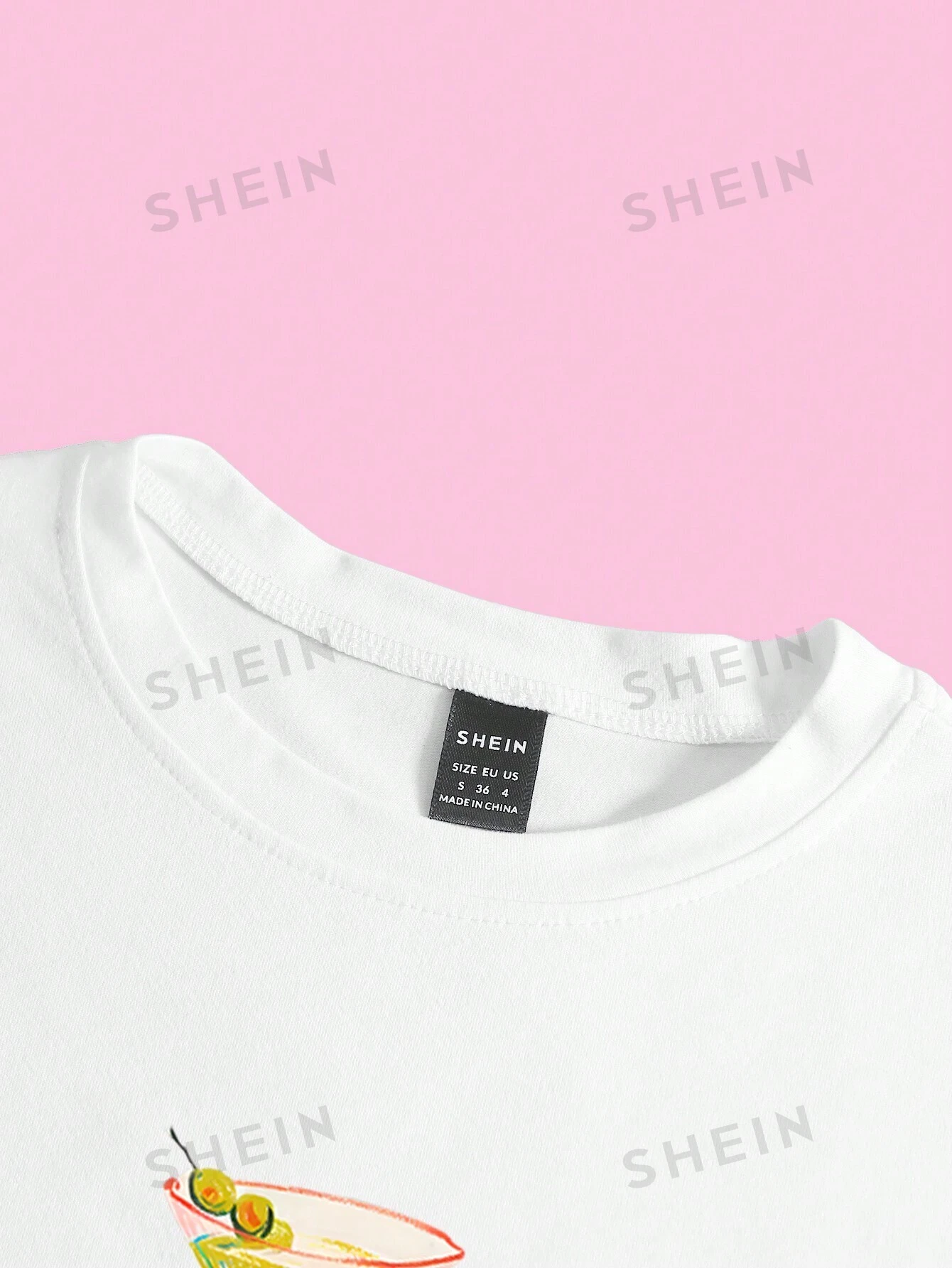 Camiseta De Manga Corta Con Diseño De Copa De Vino