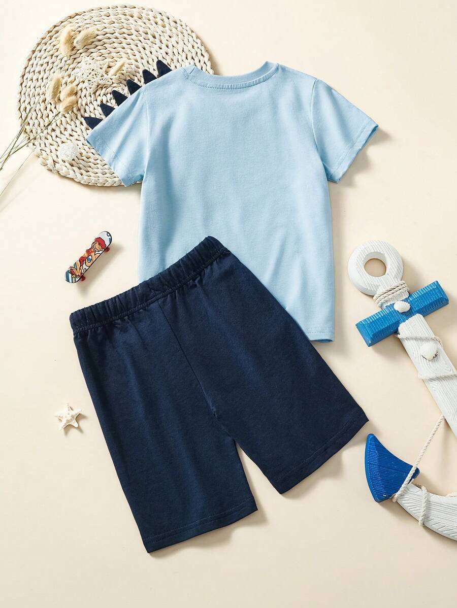camiseta de manga corta con estampado de dinosaurio y pantalones cortos