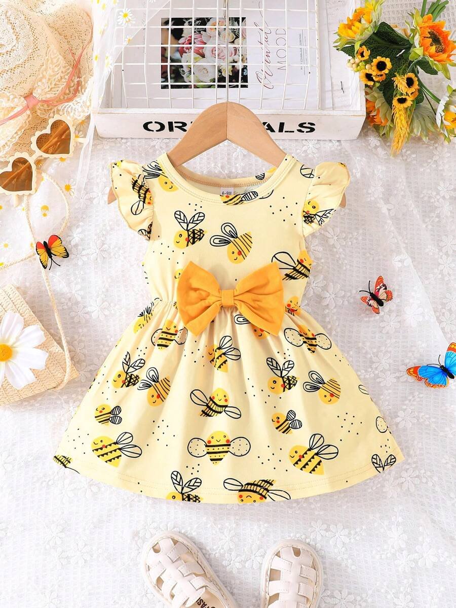 Vestido Delantera Con Lazo Y Diadema Con Estampado De Corazones