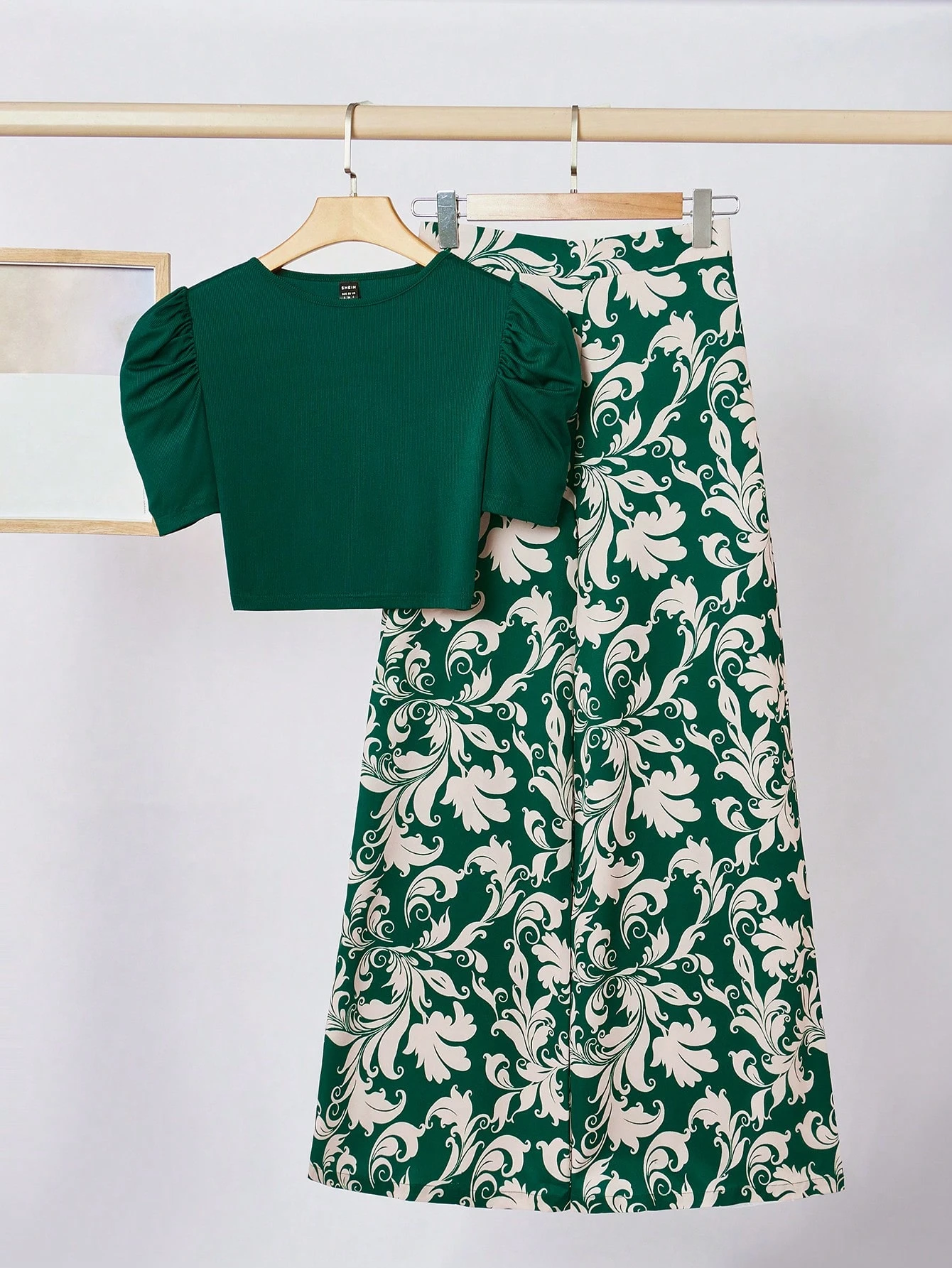 camiseta de manga corta con manga de globo y pantalones con estampado floral