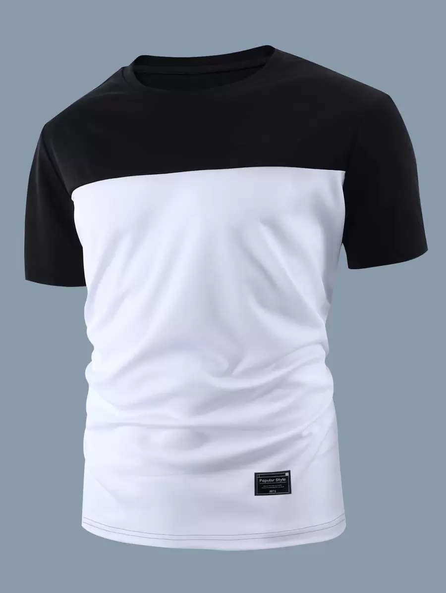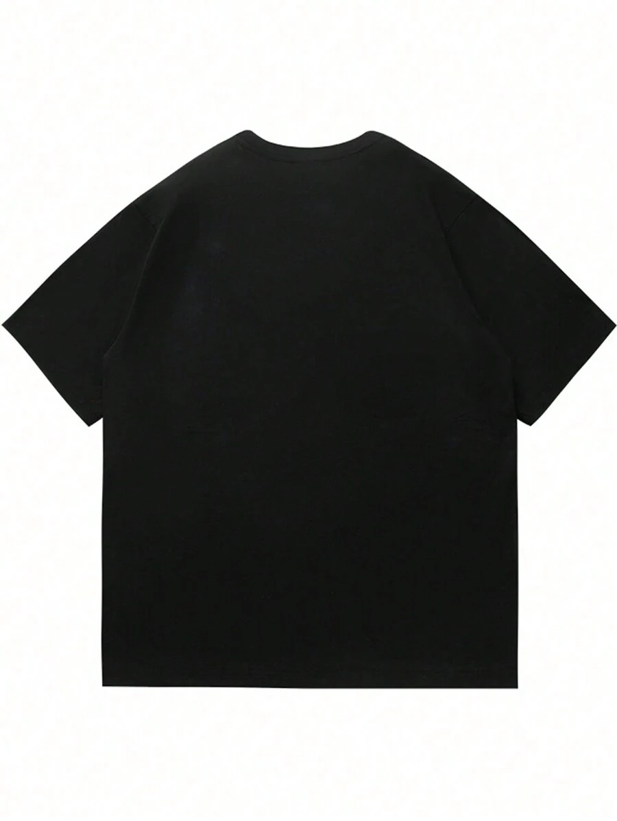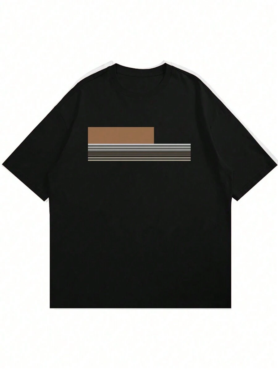 Camiseta de manga corta de cuello redondo casual con estampado gráfico a rayas