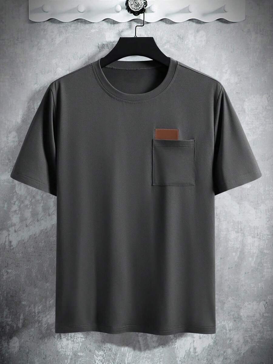 Camiseta de manga corta de cuello redondo con bolsillo en el pecho izquierdo