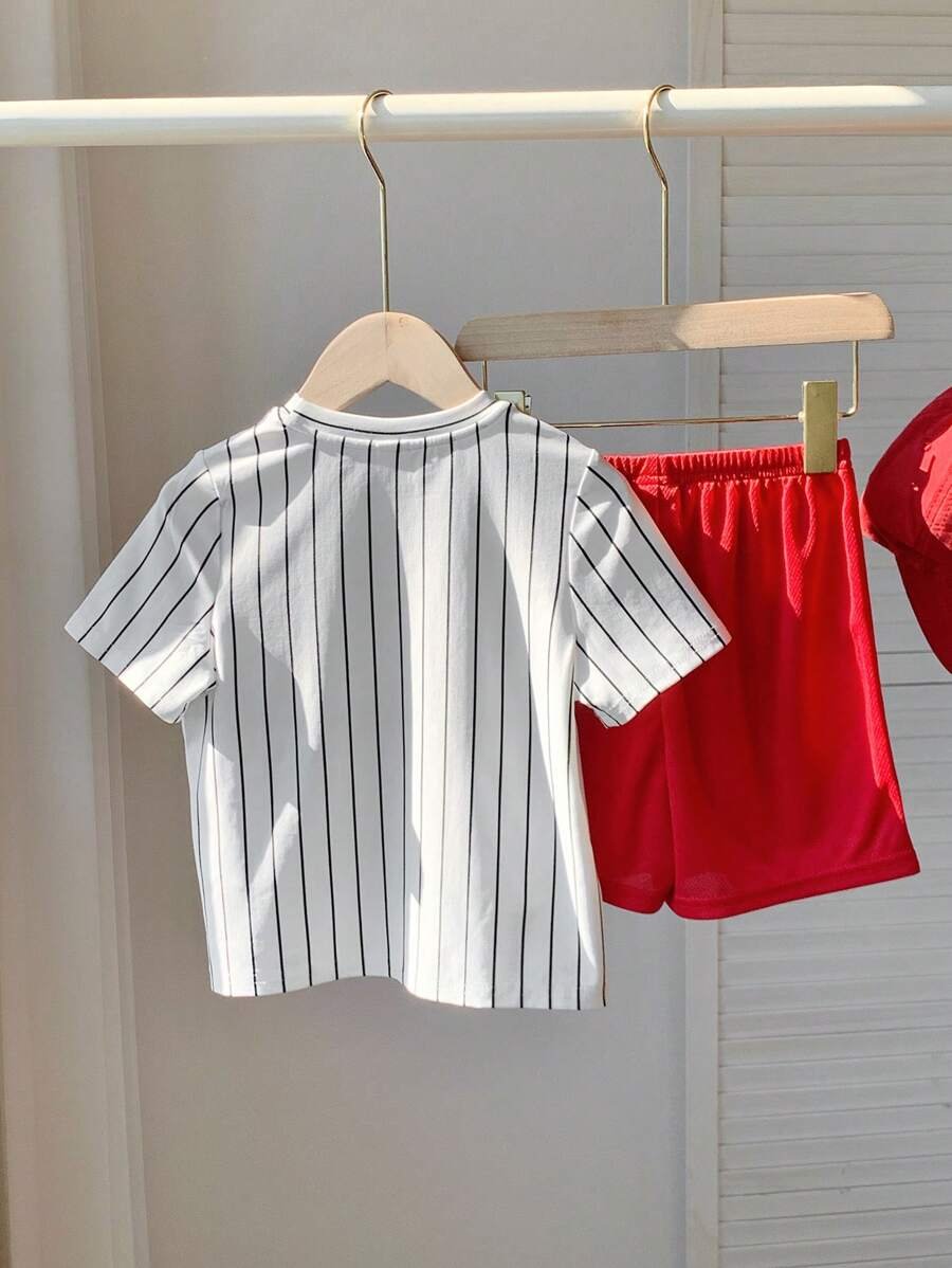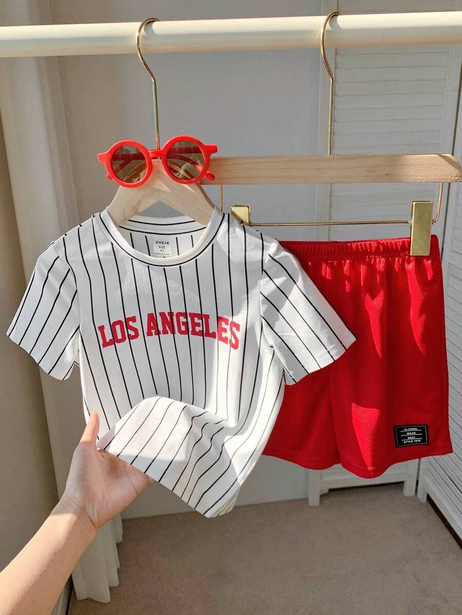 camiseta de manga corta de cuello redondo con estampado y shorts de unicolor de punto