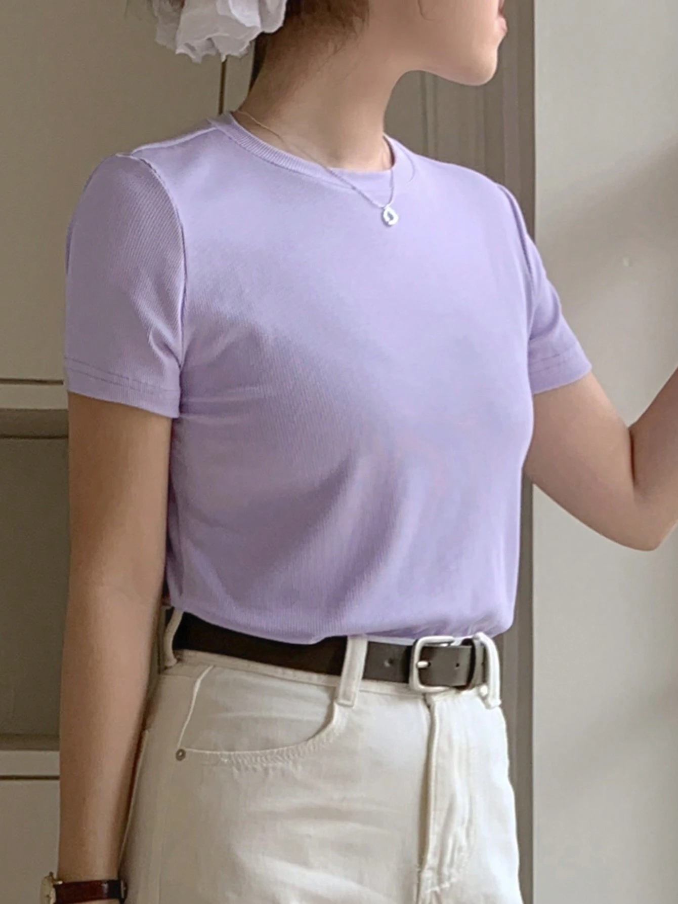Camiseta de manga corta de cuello redondo de unicolor versátil