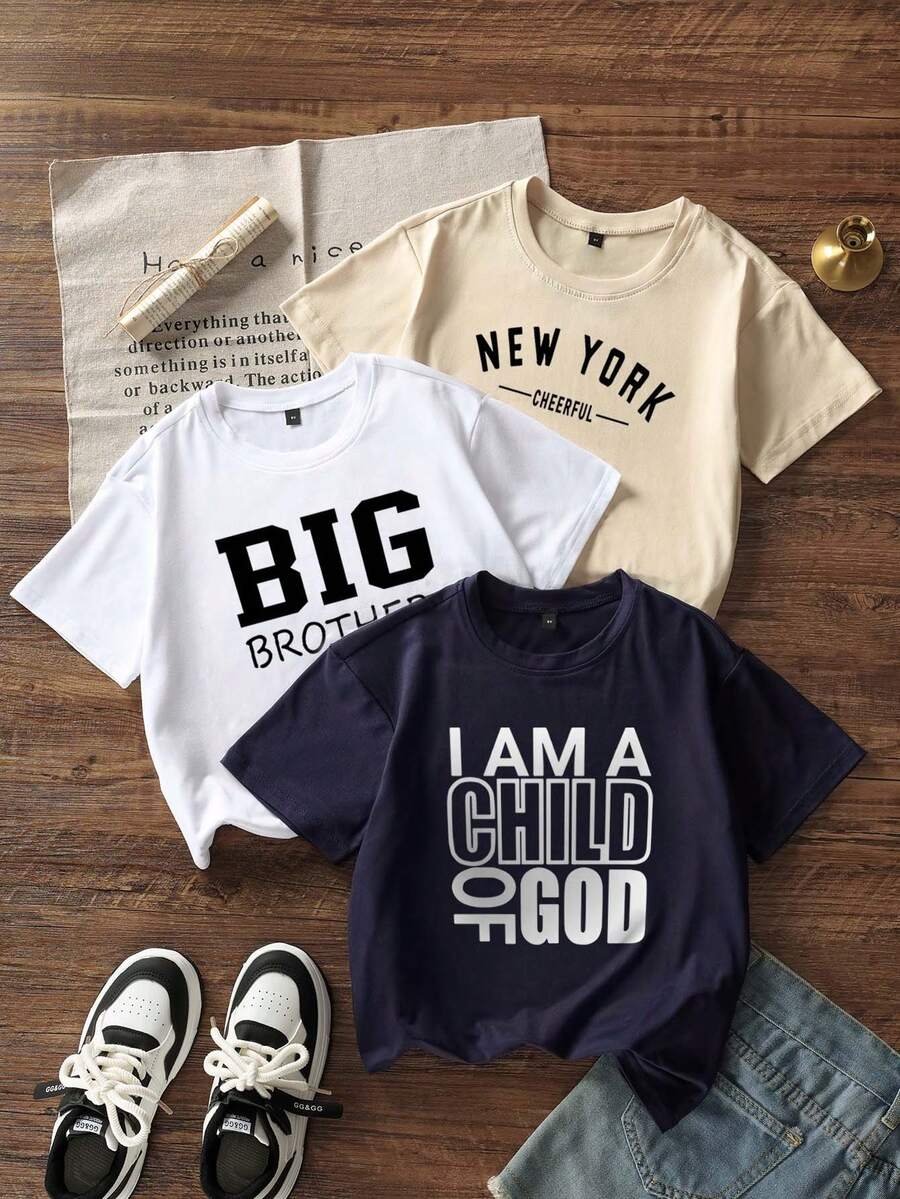 Camiseta de manga corta de cuello redondo estampada casual
