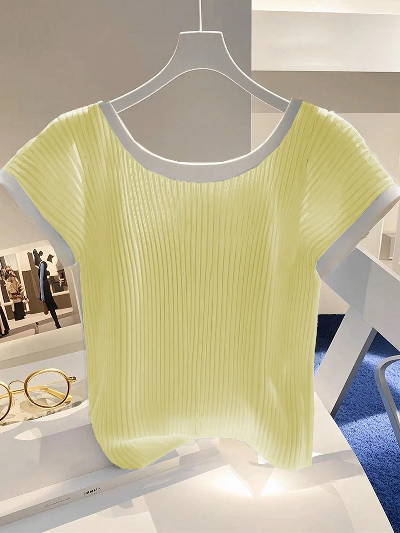 Camiseta de manga corta de punto ajustada de estilo francés