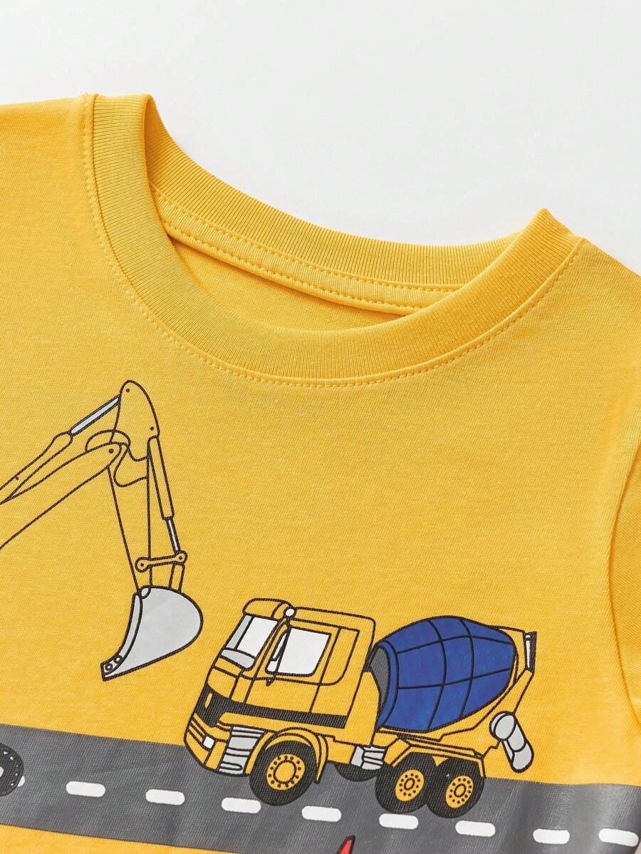 Camiseta de manga corta impresa con dibujo animado de excavadora para ni?o peque?o