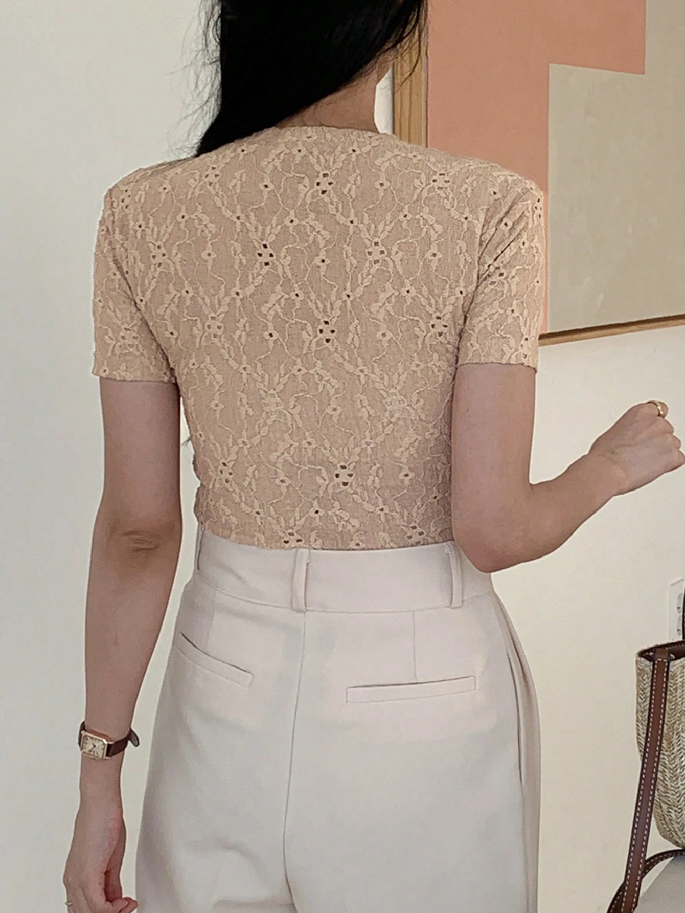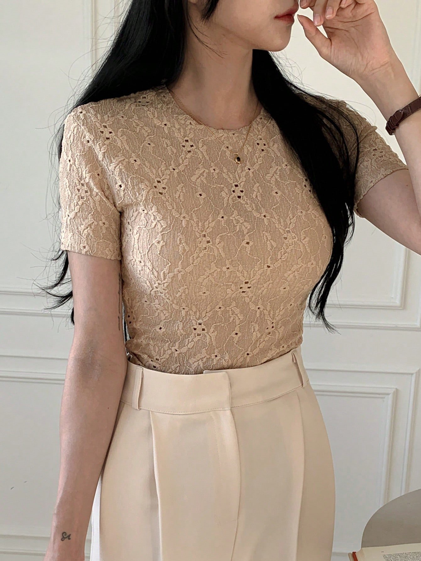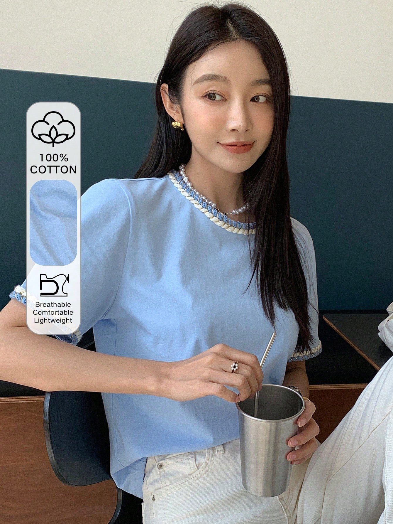 Camiseta de manga corta lisa para mujer, sencilla y de moda para uso casual