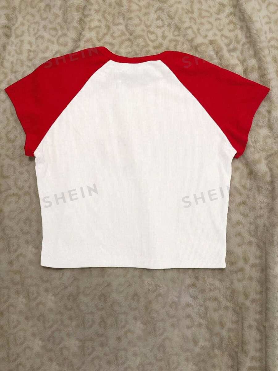 Camiseta de manga corta Slim Fit de cuello redondo y manga raglán