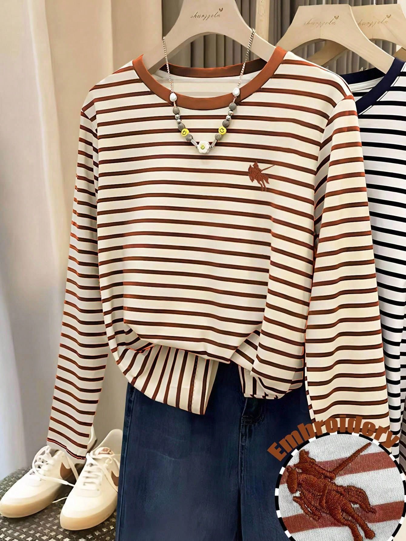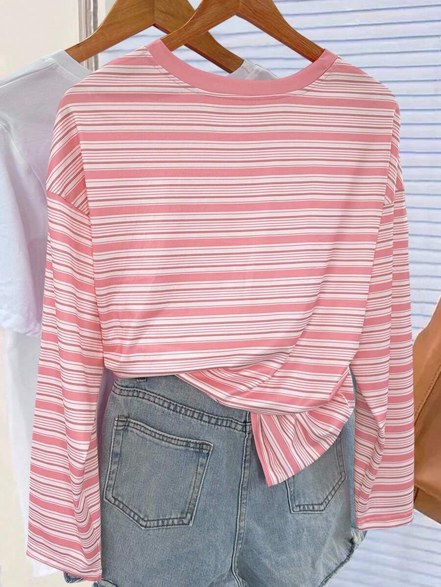 Camiseta de manga larga con cuello redondo, estampado de rayas