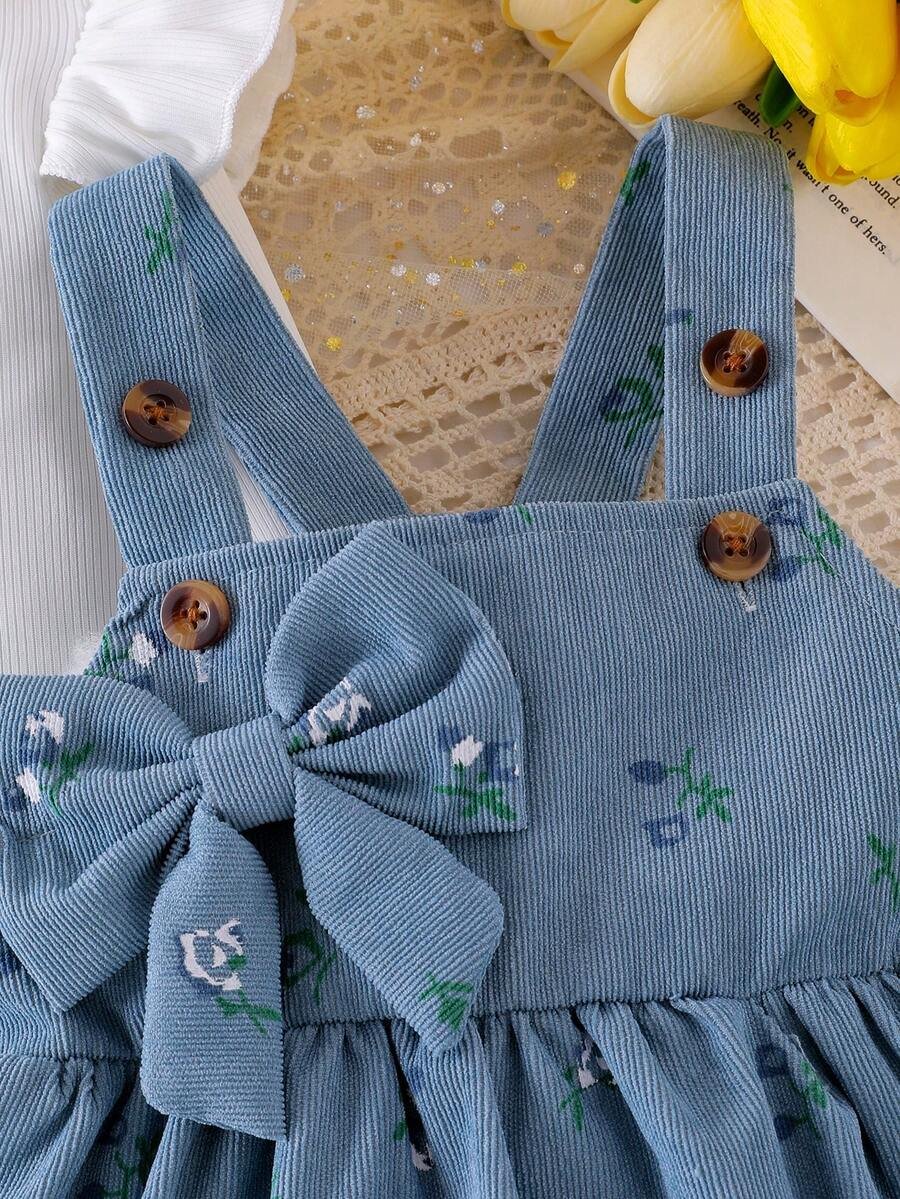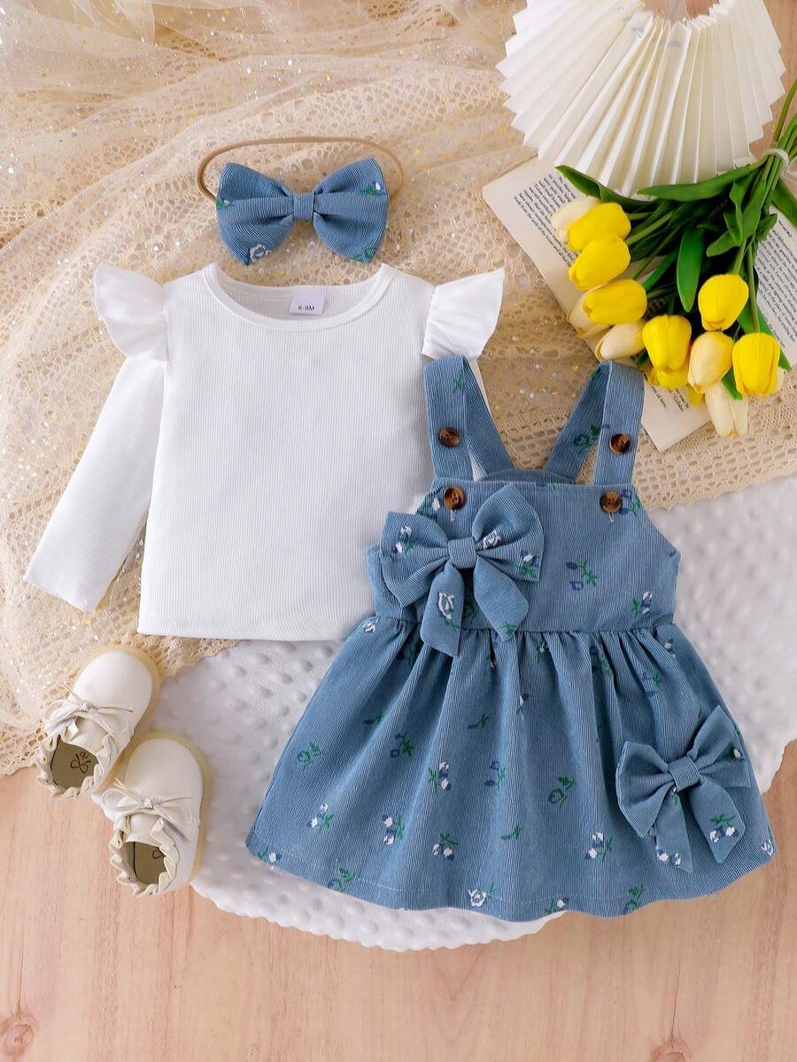 Camiseta de manga larga con manga acampanada y vestido sin mangas con estampado floral