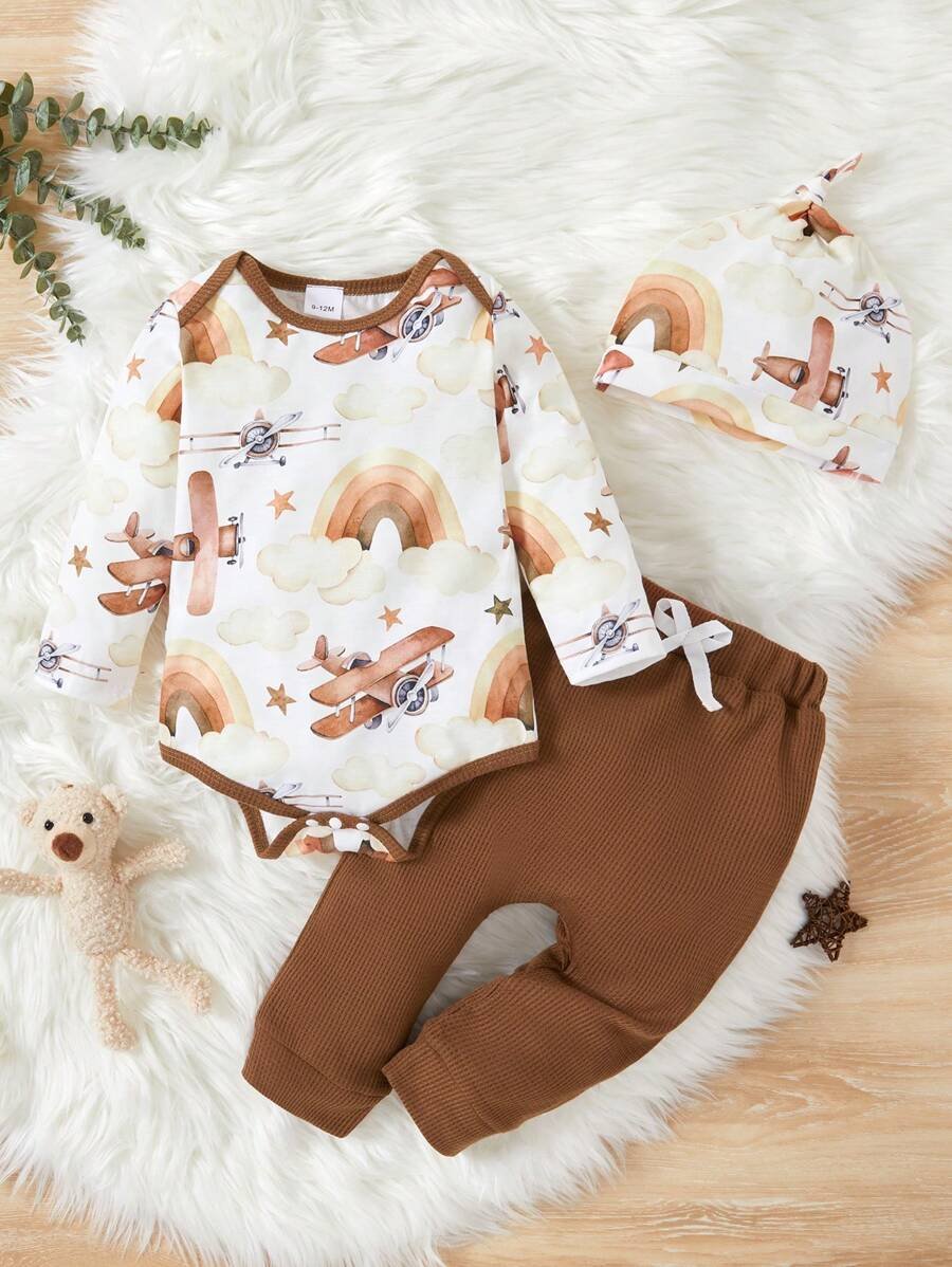 Camiseta De Manga Larga Y Pantal?n Casual Con Estampado Vac?o A Rayas Para Beb? Ni?o
