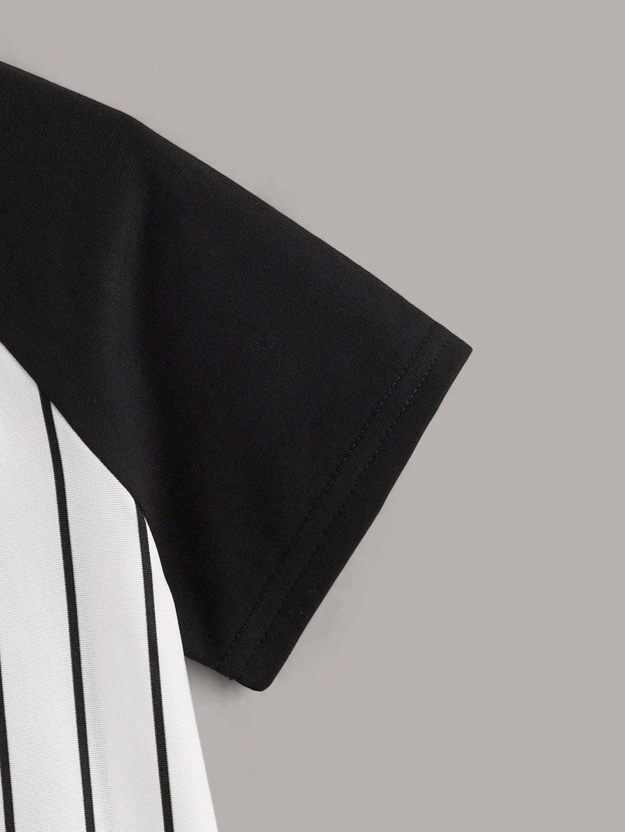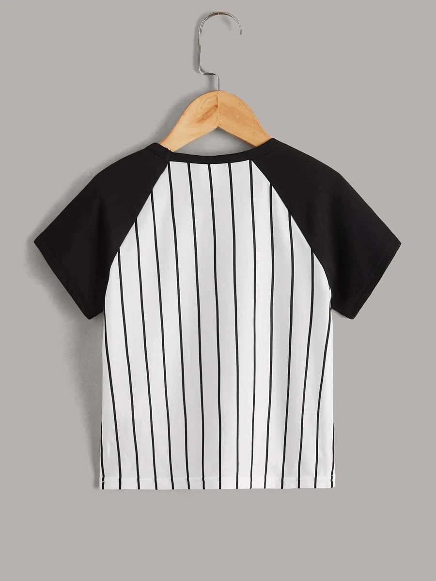 Camiseta De Manga Ragl?n Con Bloques De Color Y Estampado De Rayas