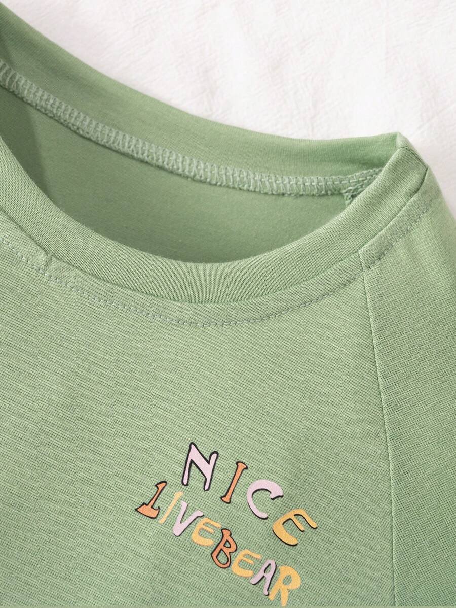 Camiseta De Manga Ragl?n De Impresi?n De Letras