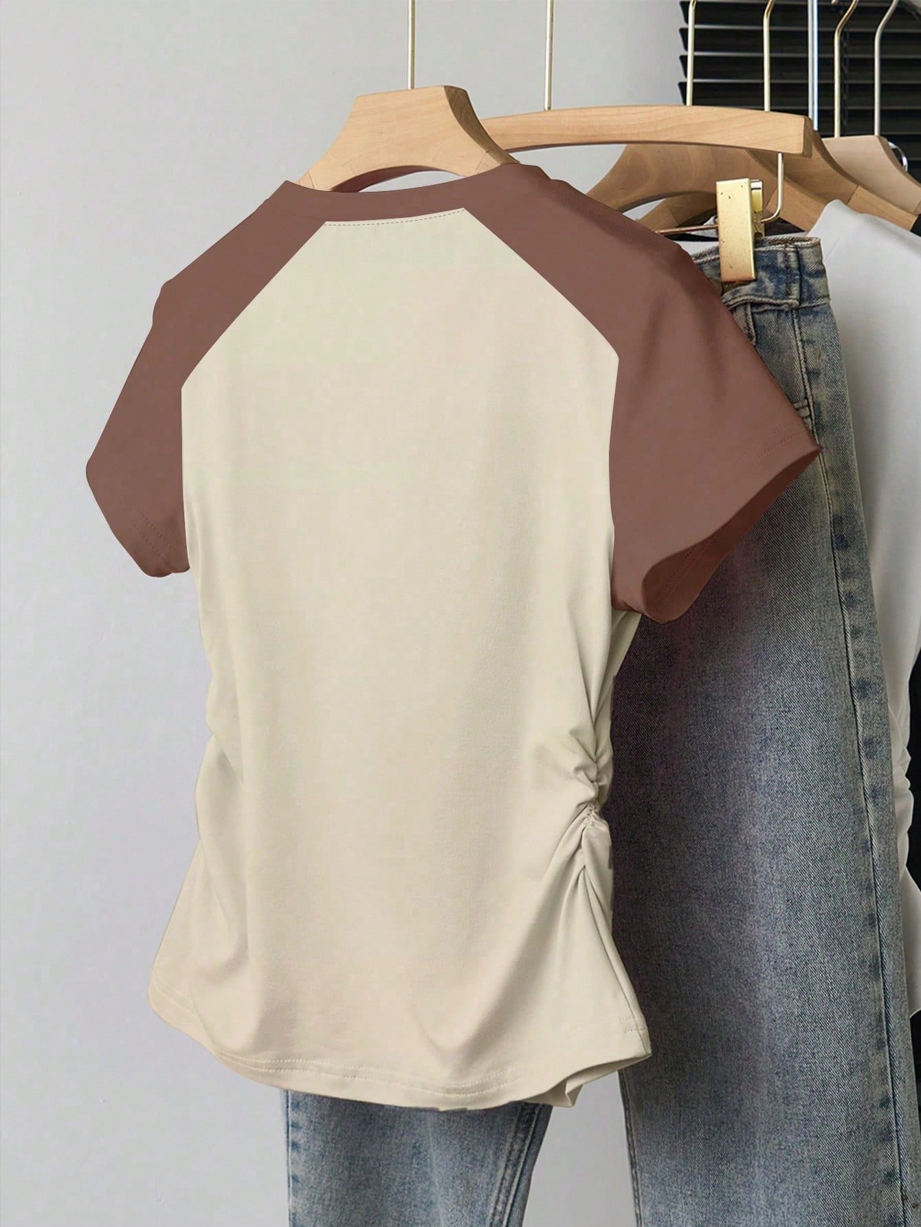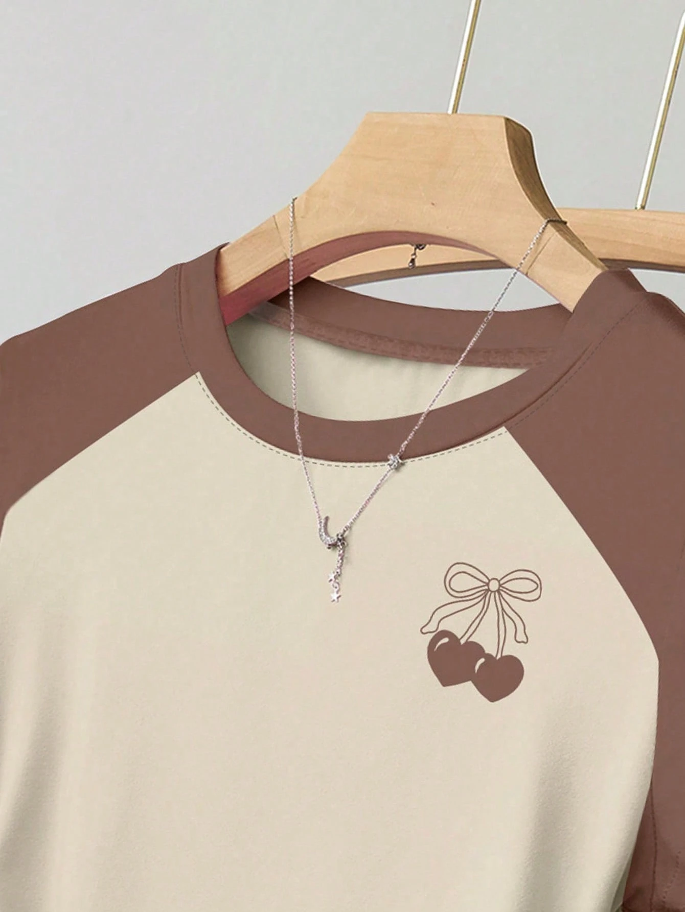 Camiseta de mujer con cintura entallada, estampado de cerezas