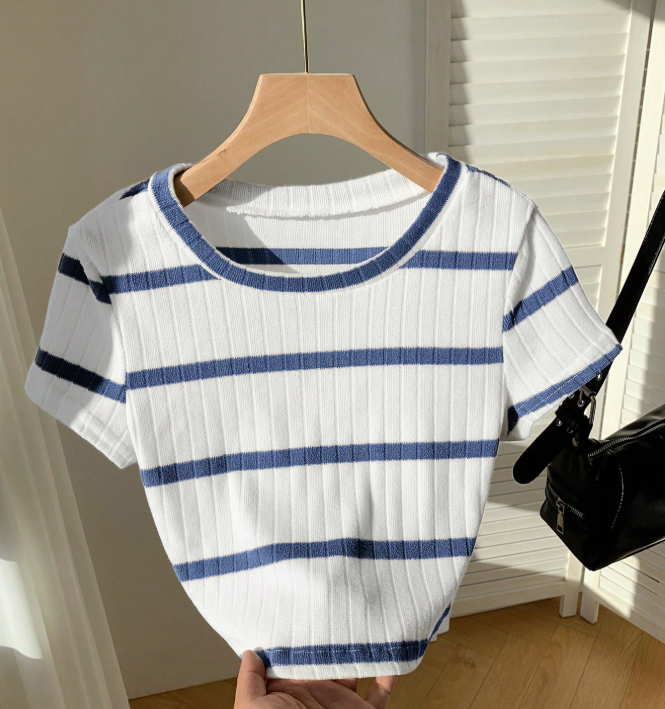 Camiseta de mujer de cuello redondo, manga corta, regular