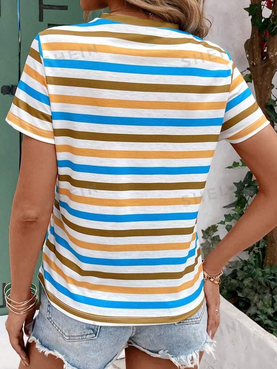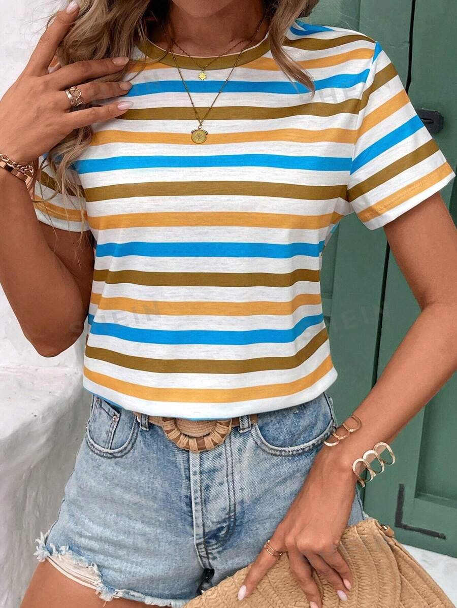 Camiseta De Mujer De Manga Corta Y Cuello Redondo Con Rayas