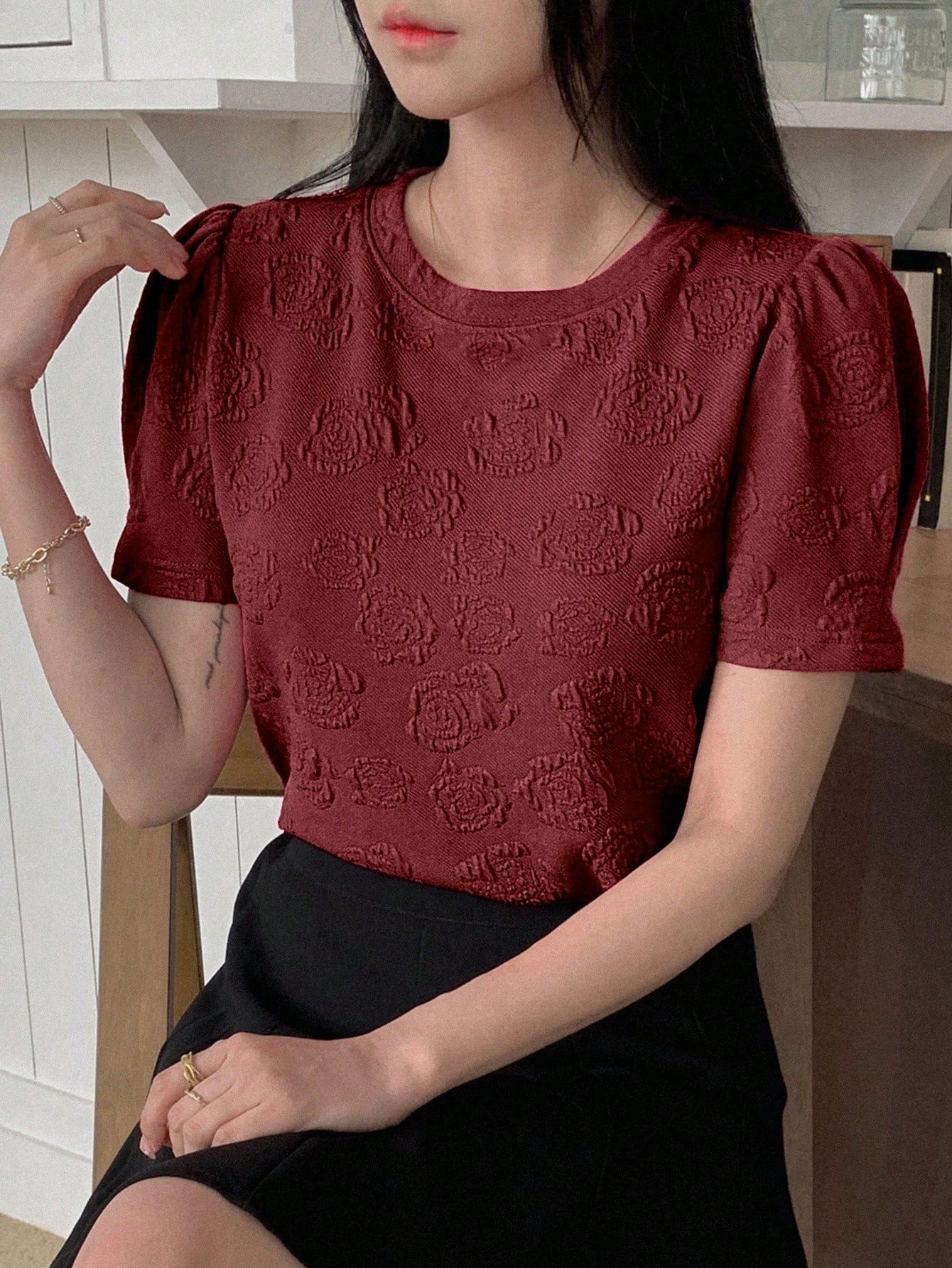 Camiseta de mujer de manga corta y cuello redondo, dulce y casual
