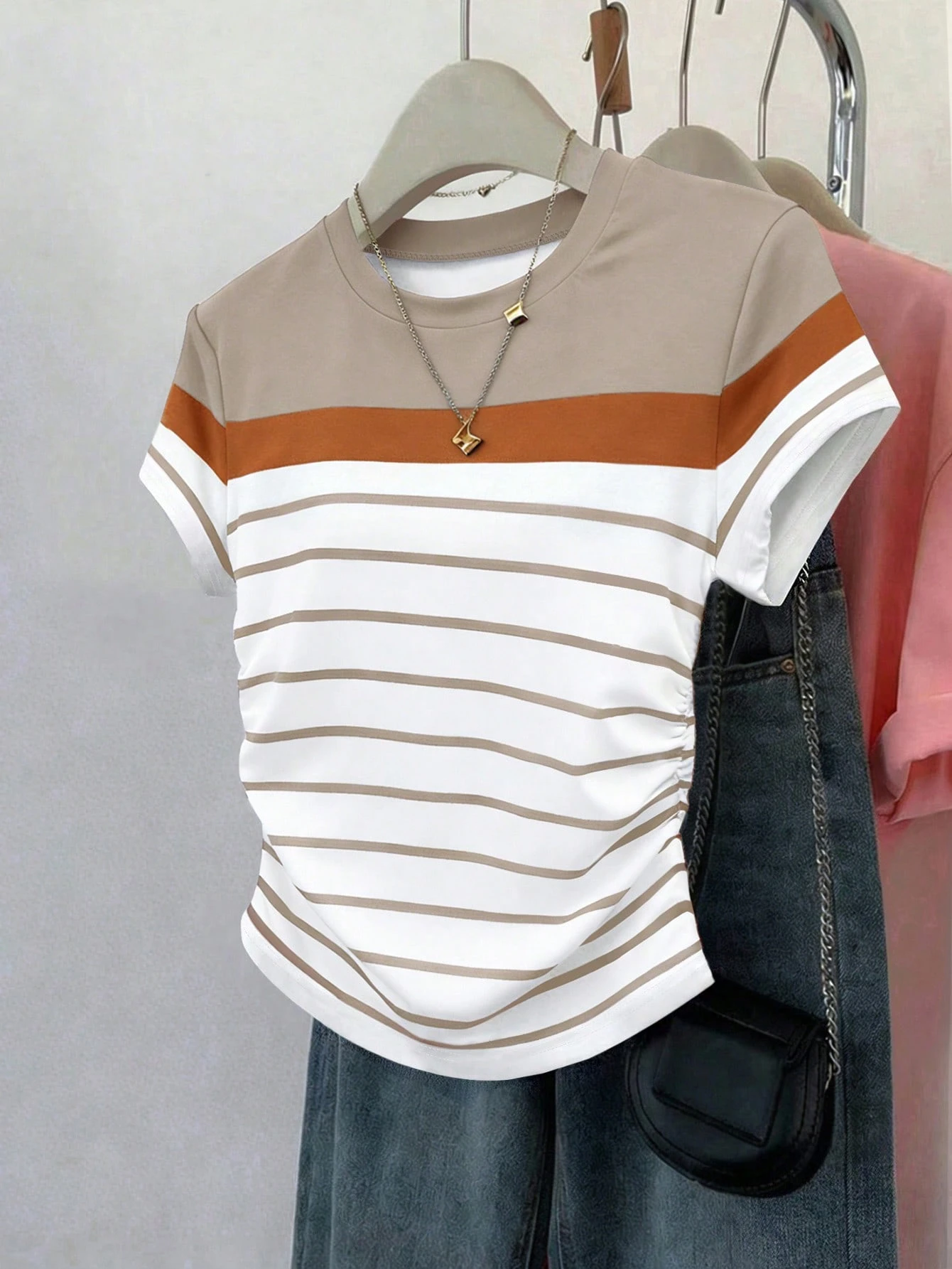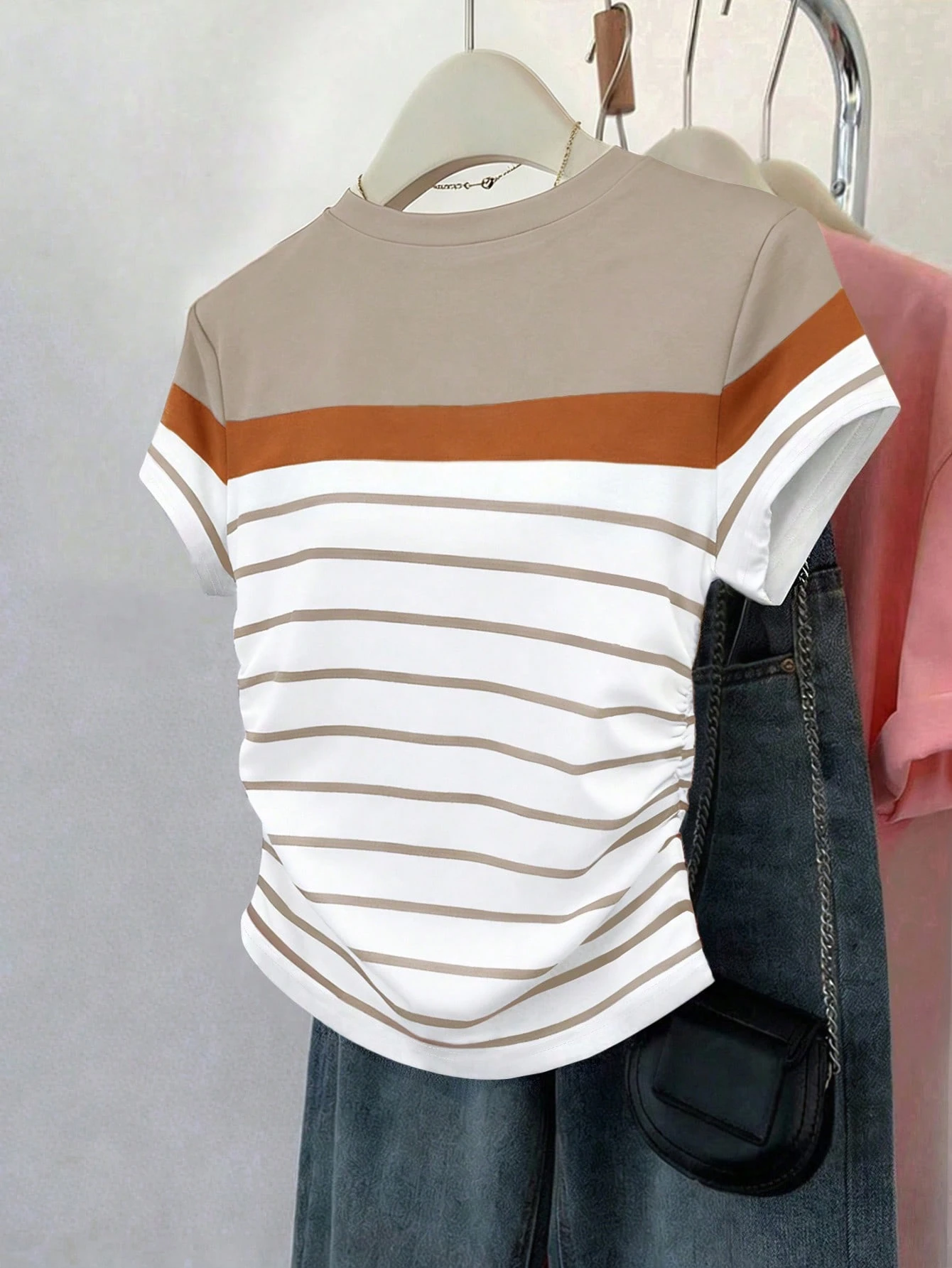 Camiseta de mujer para exteriores, diseño gráfico, a rayas multicolor