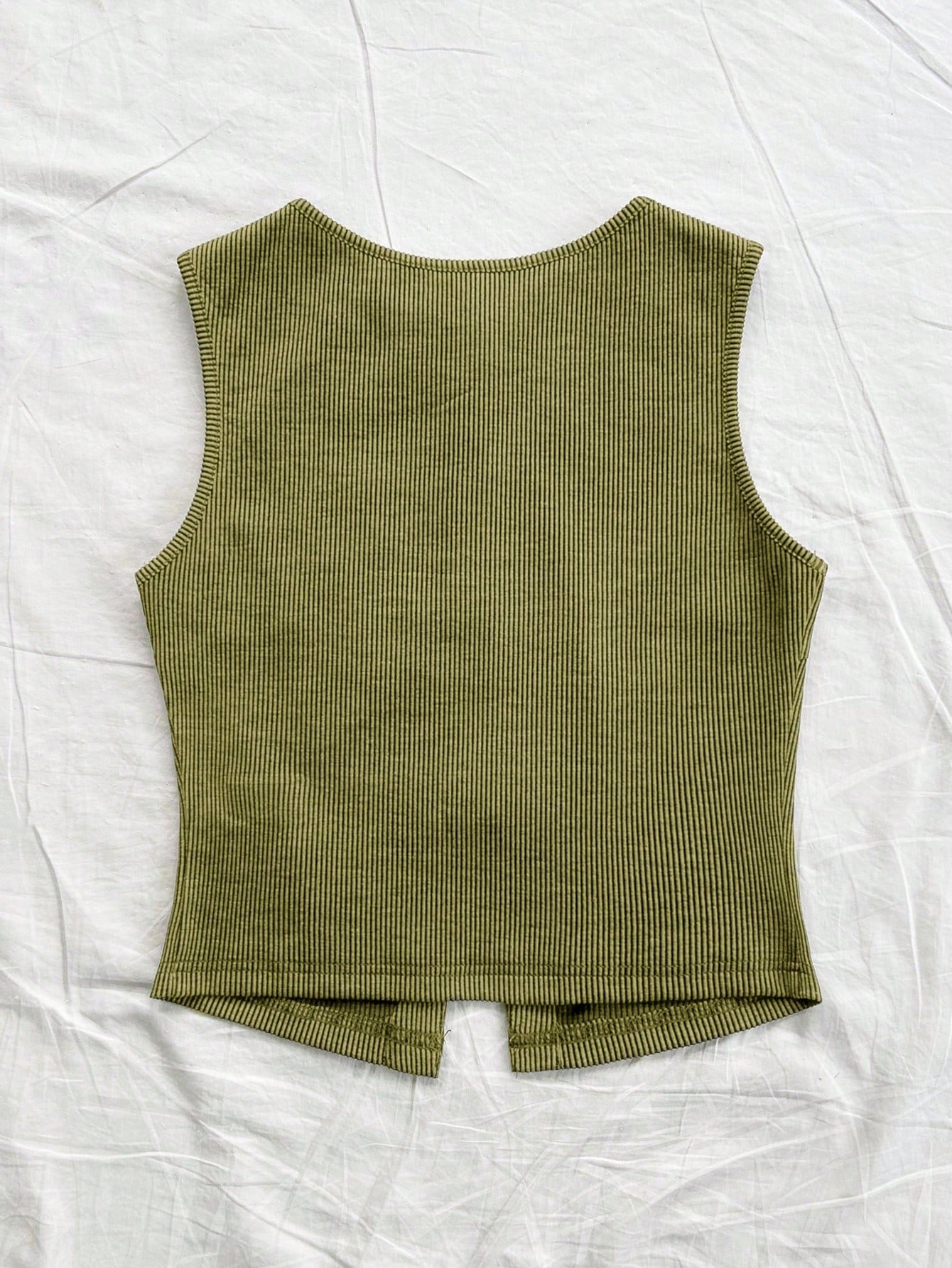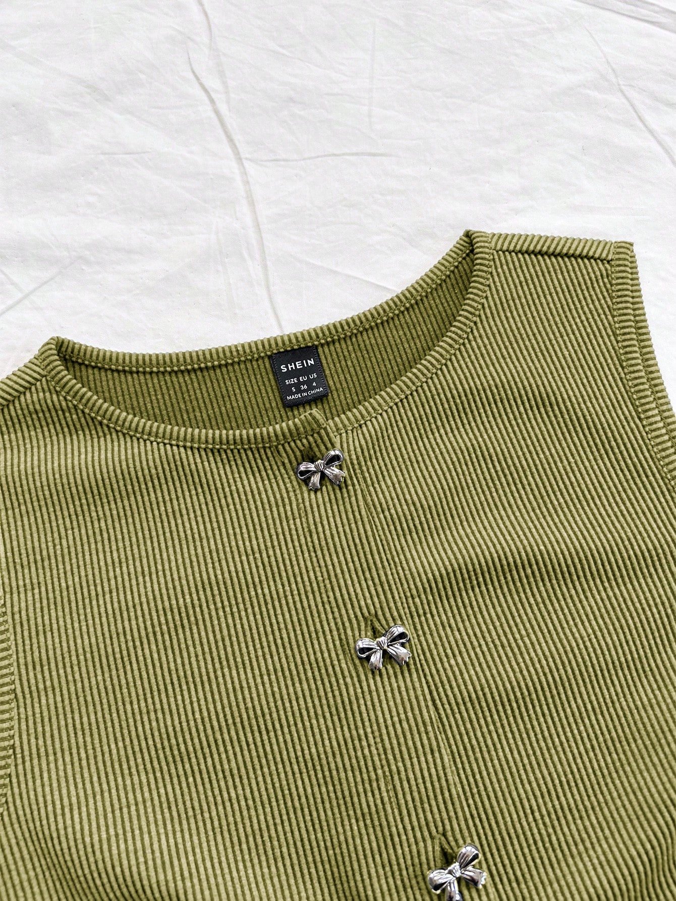 Camiseta de punto jacquard verde con decoración de botones de mariposa