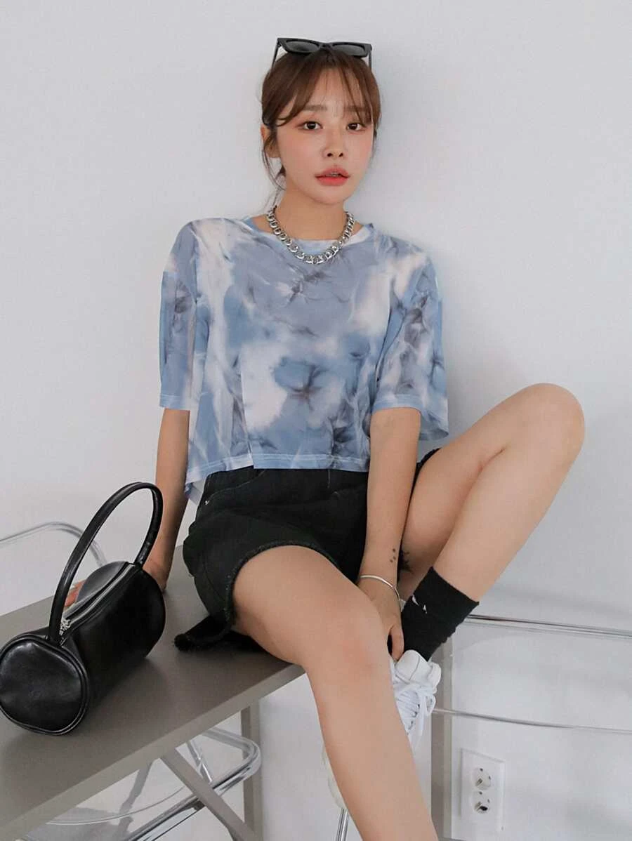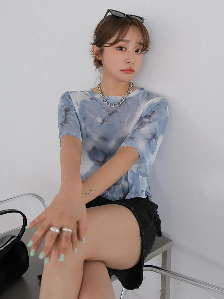 Camiseta de tie dye de cuello redondo