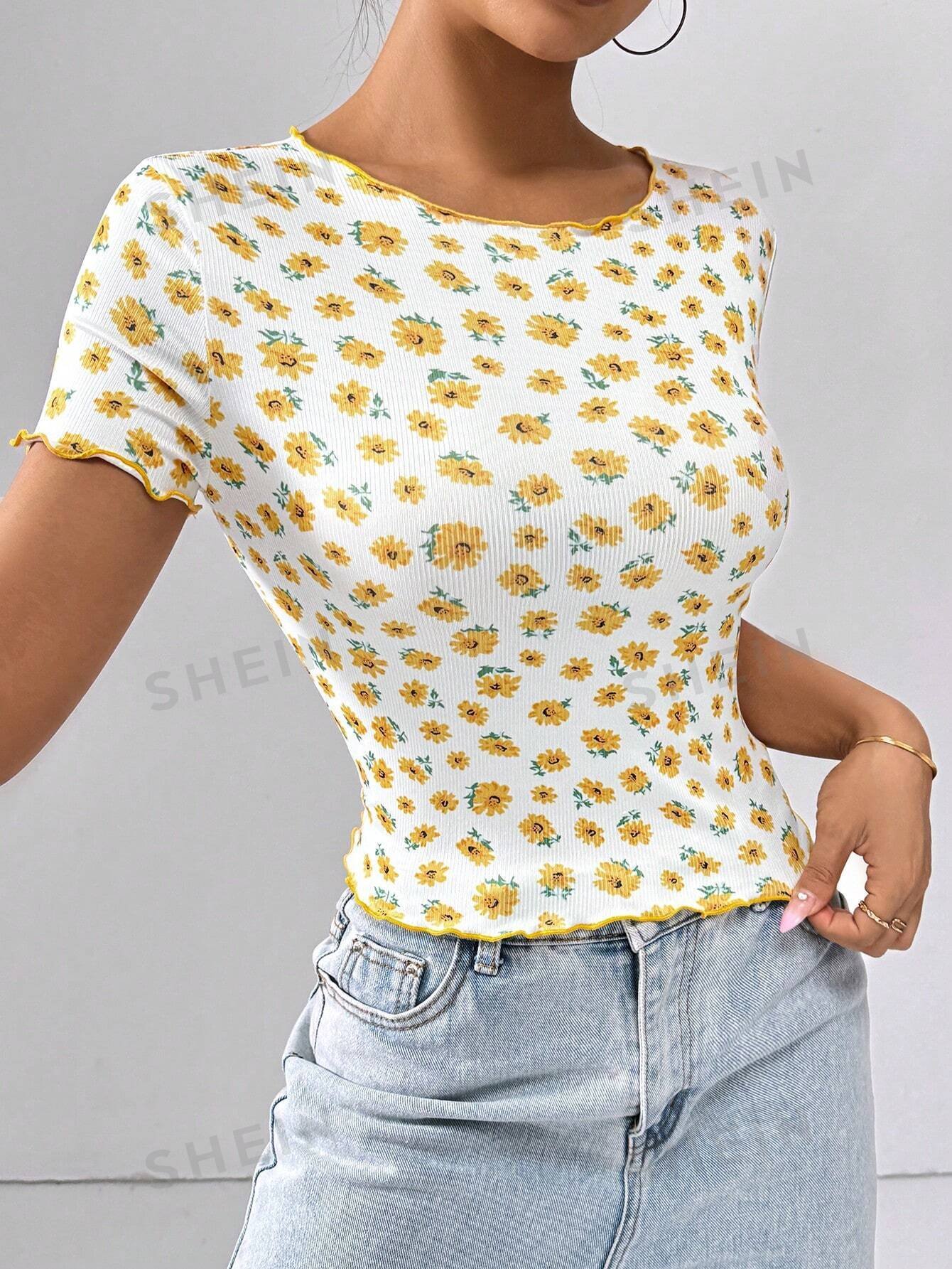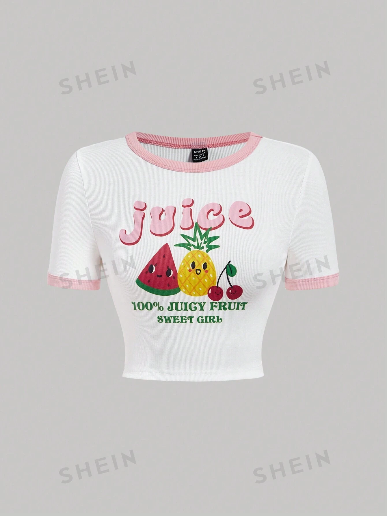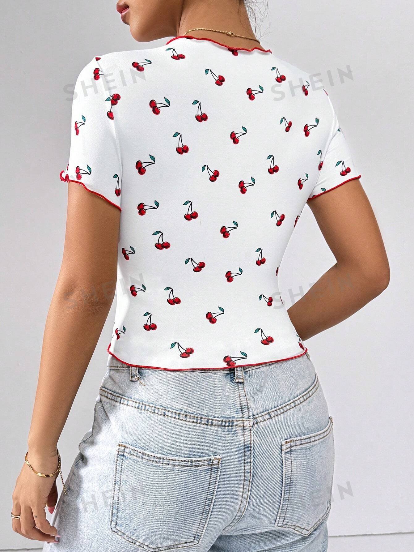 Camiseta De Verano De Ajuste Estrecho De Manga Corta Con Estampado De Cerezas