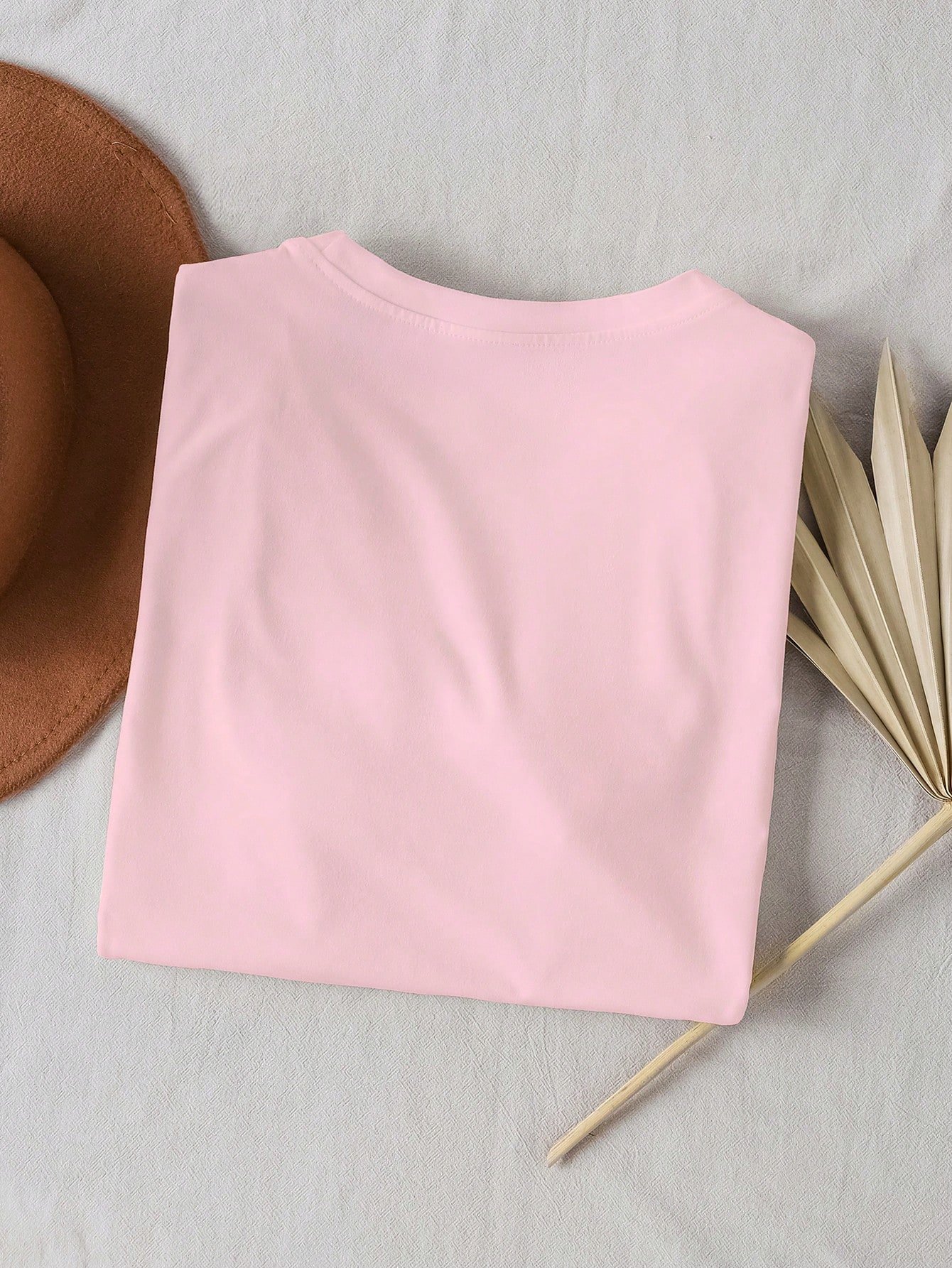 Camiseta de verano entallada para mujer con diseño bordado del eslogan en inglés