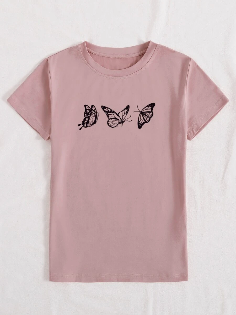 Camiseta gráfica con cuello redondo y estampado de mariposa