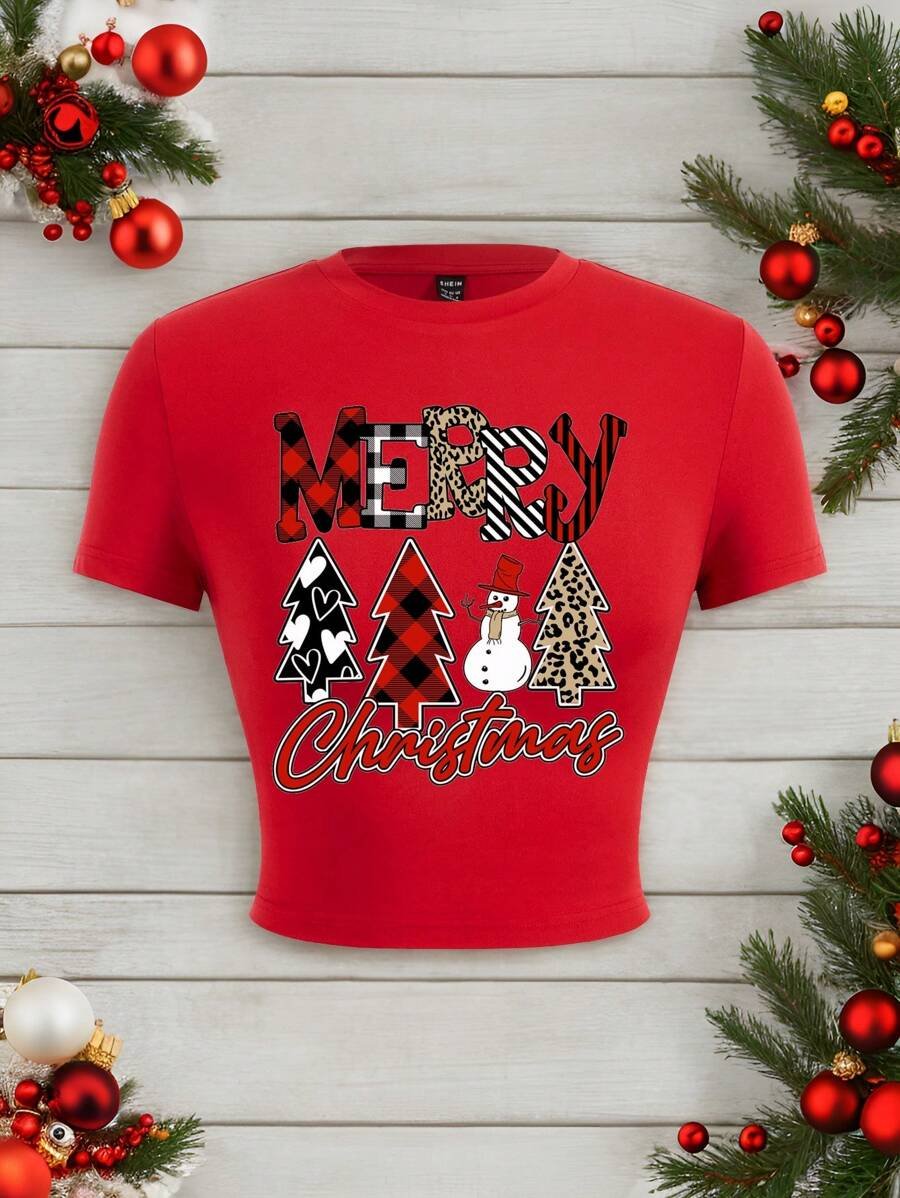 Camiseta gráfica de mujer con cuello redondo