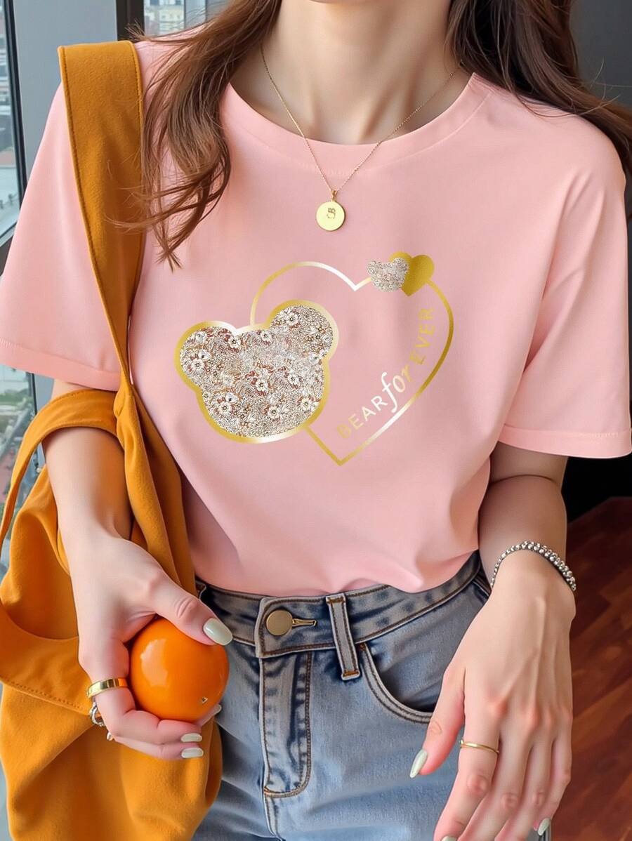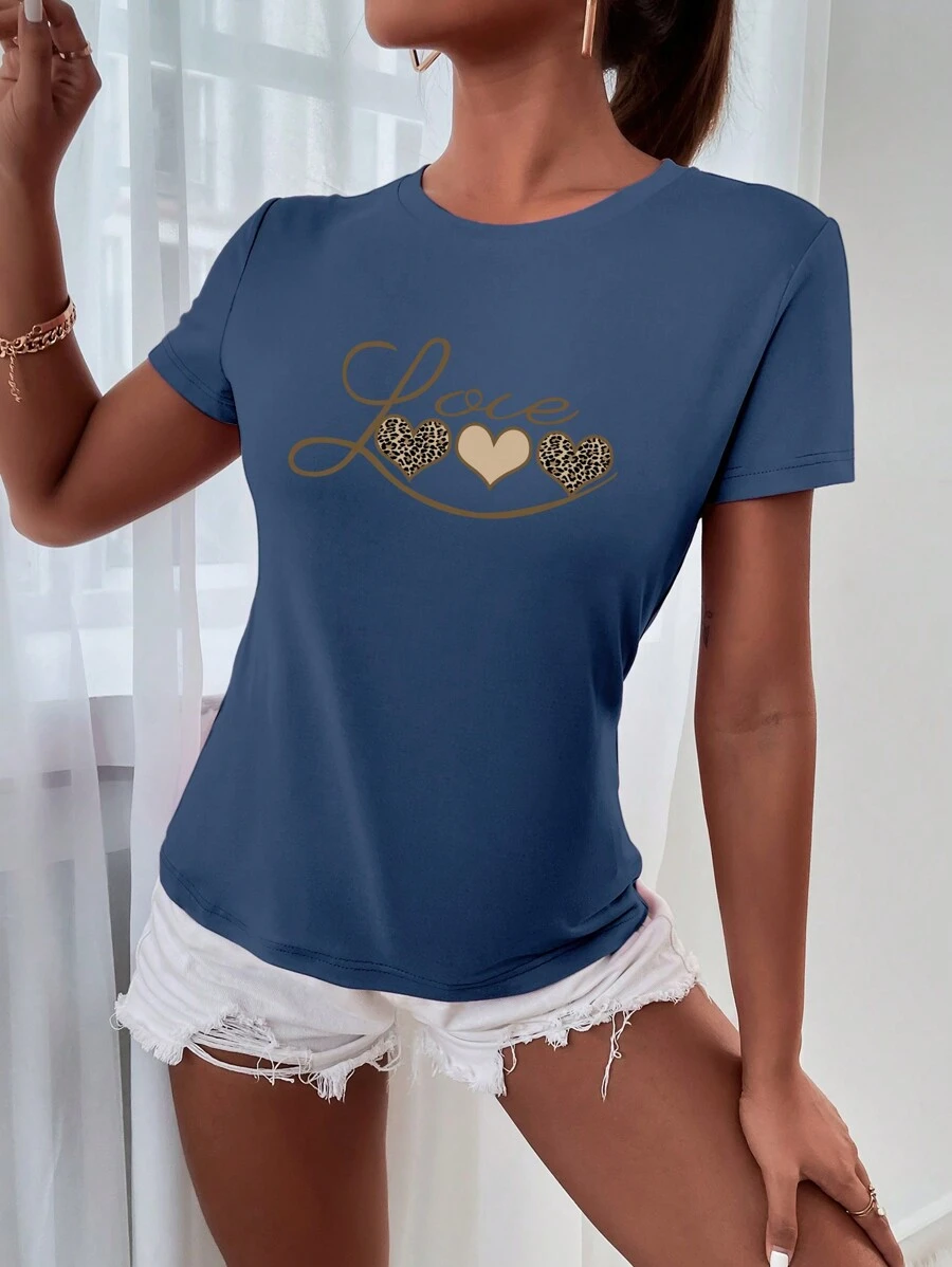 Camiseta media-larga de manga corta con cuello redondo con estampado de leopardo