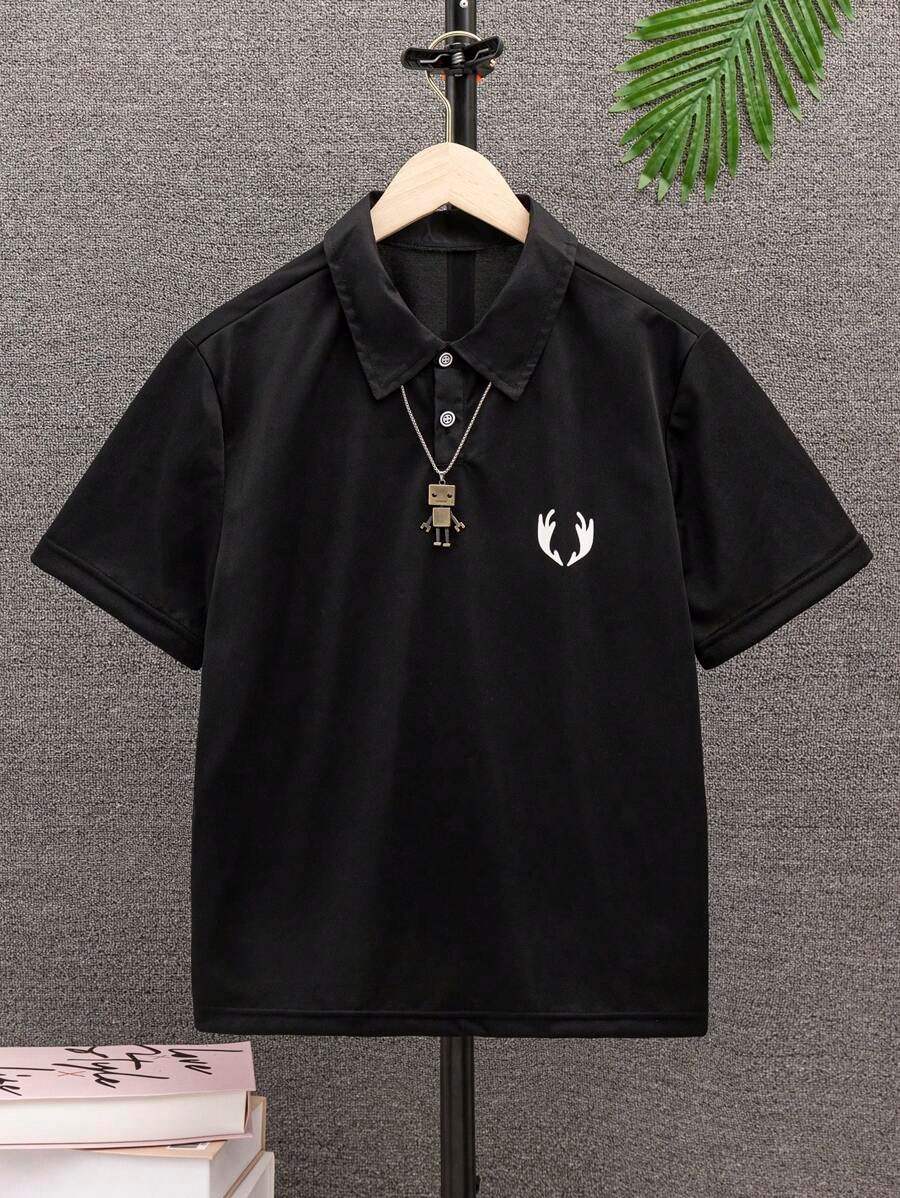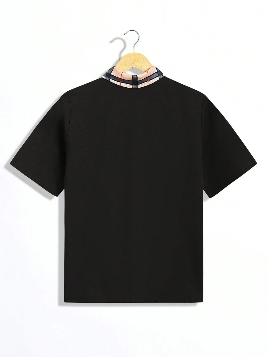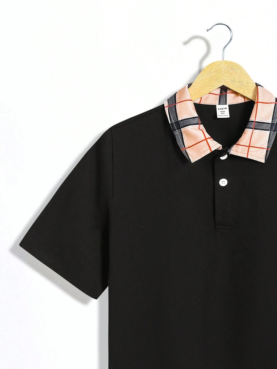Camiseta Polo B?sica Casual Con Cuello De Parche Bordado Y Estampado A Cuadros