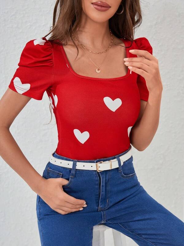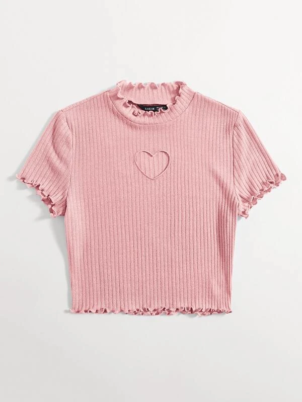 Camiseta ribete en forma de lechuga con abertura de coraz?n