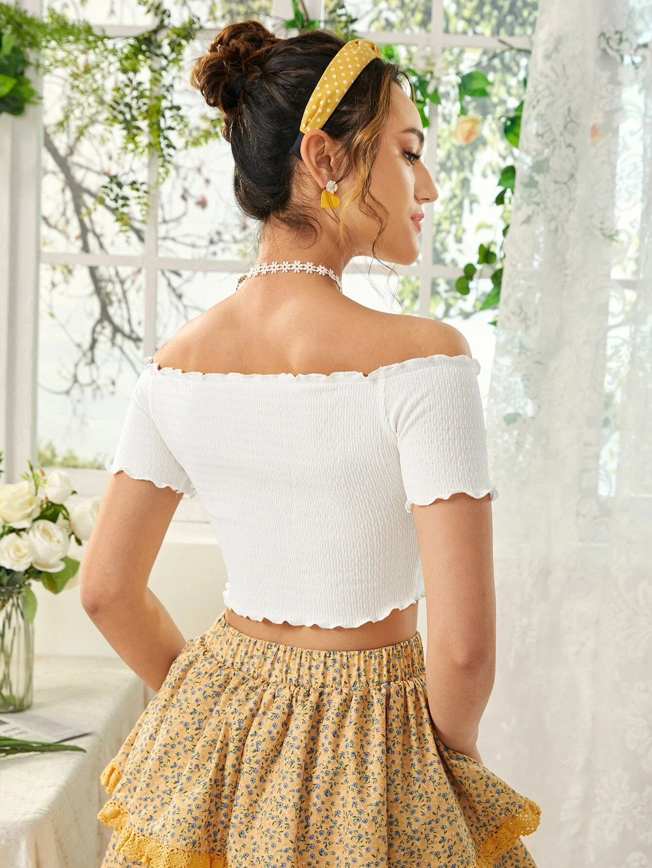 Camiseta ribete en forma de lechuga de hombros descubiertos