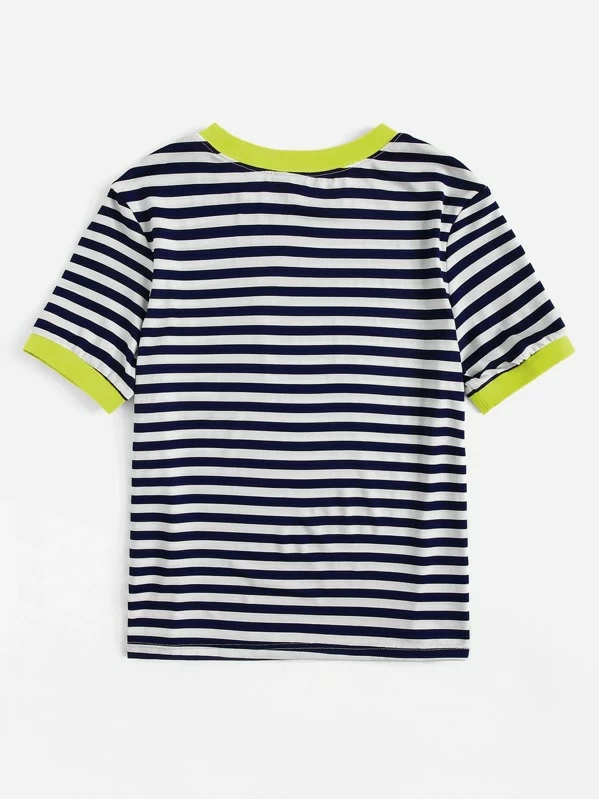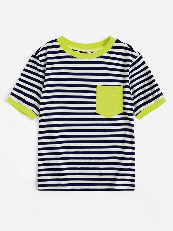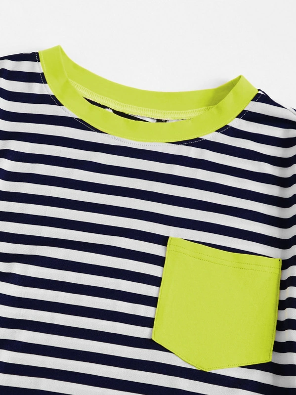 Camiseta ringer de rayas con bolsillo