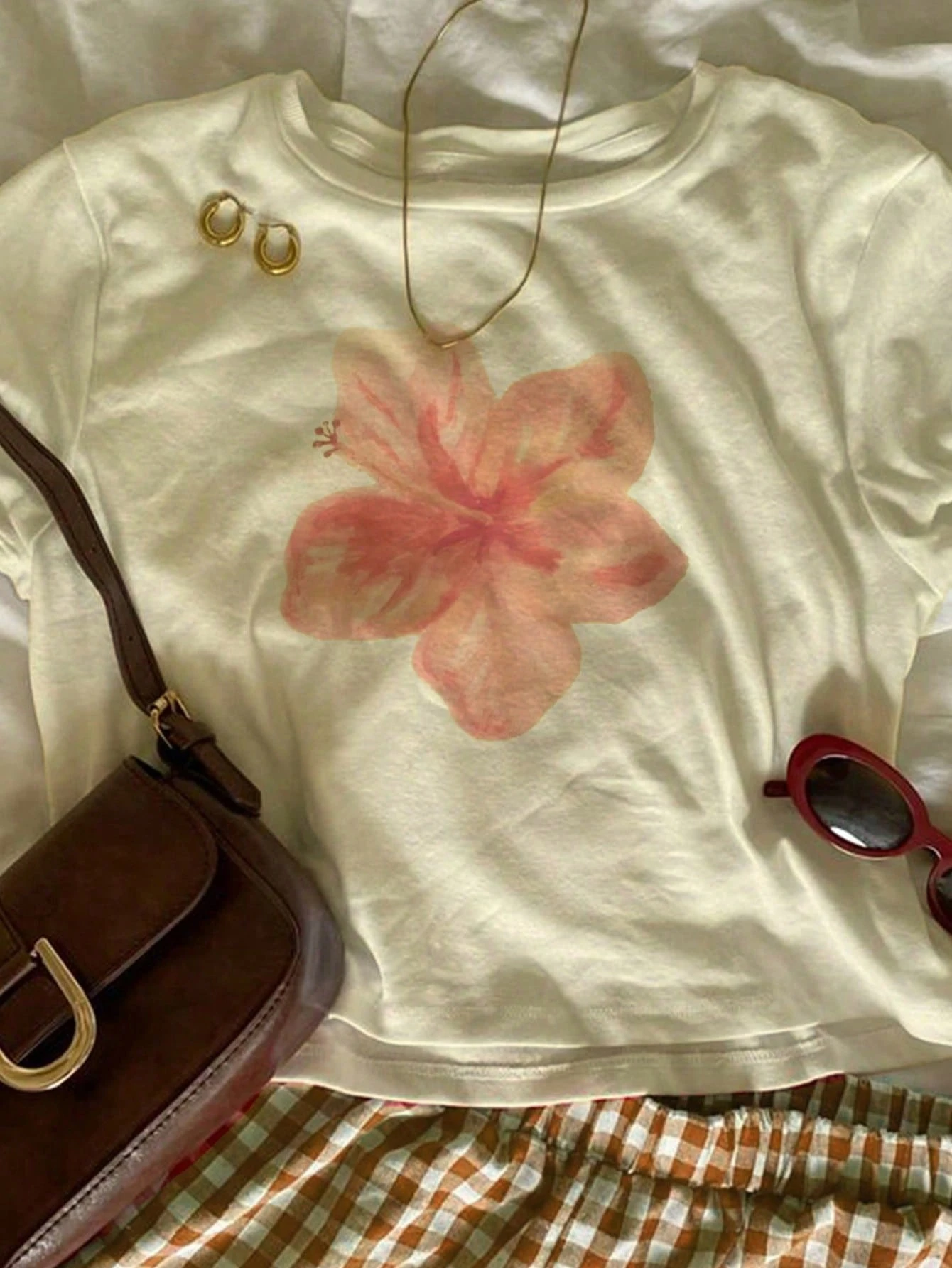 Camiseta sencilla de mujer con cuello redondo y manga corta