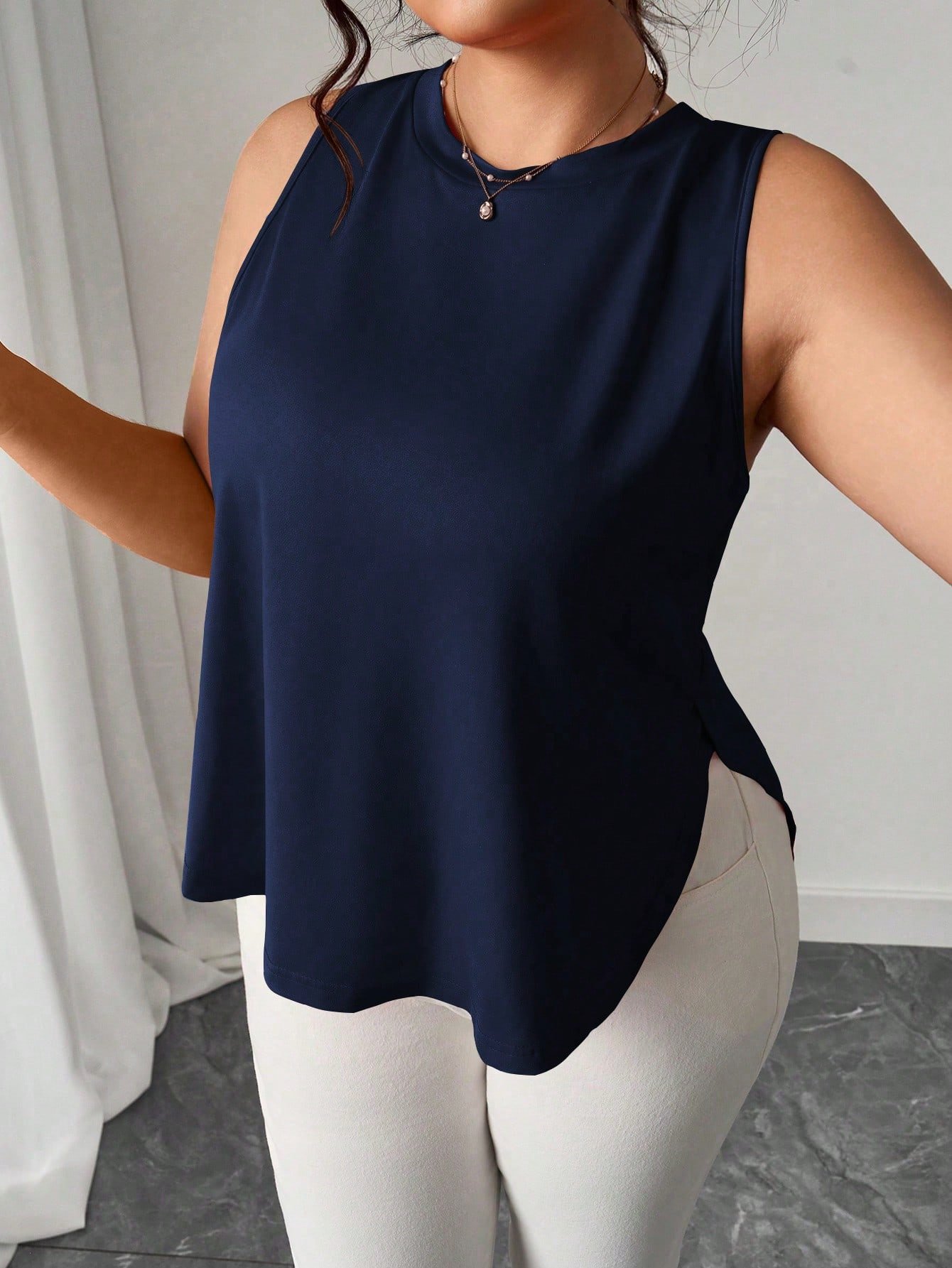 Camiseta sin mangas informal con cuello redondo y abertura lateral