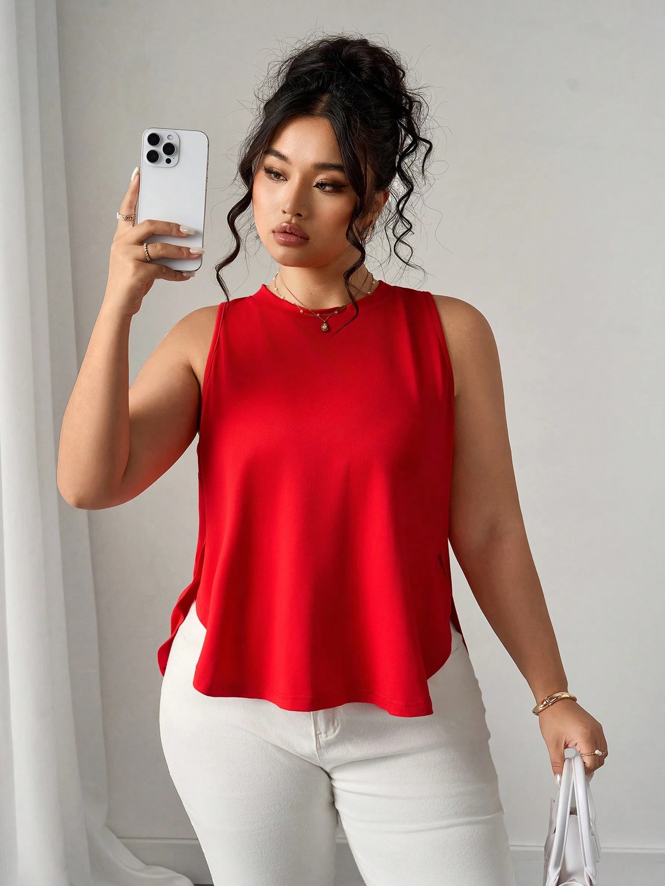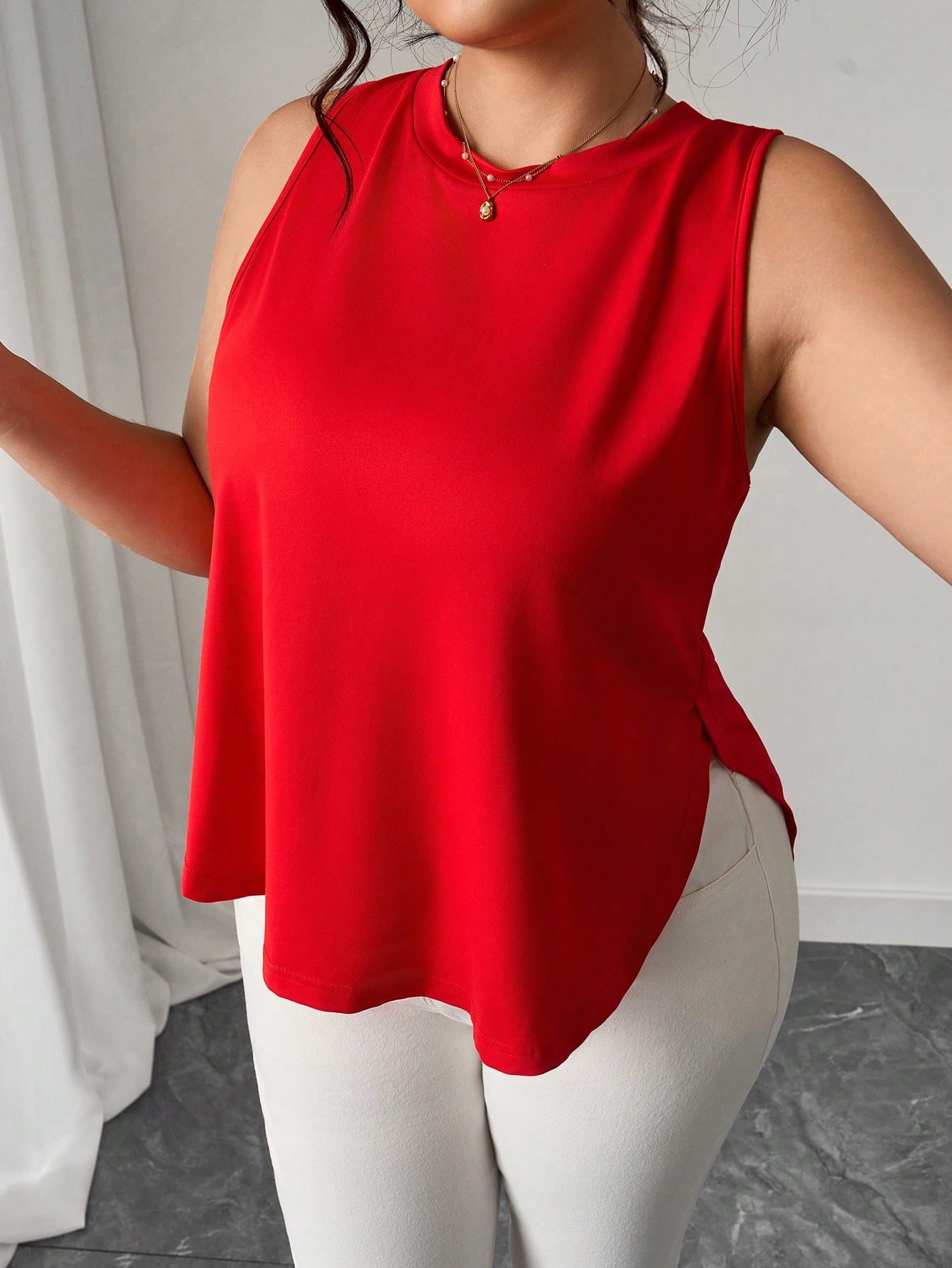 Camiseta sin mangas informal con cuello redondo y abertura lateral