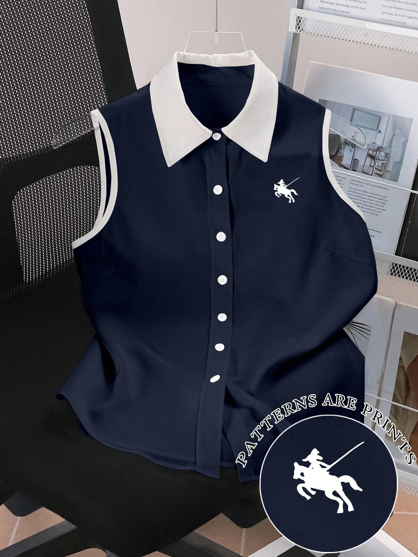 Camiseta sin mangas para mujer, blusa con estampado de caballero elegante