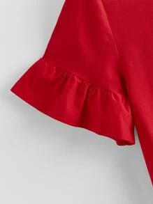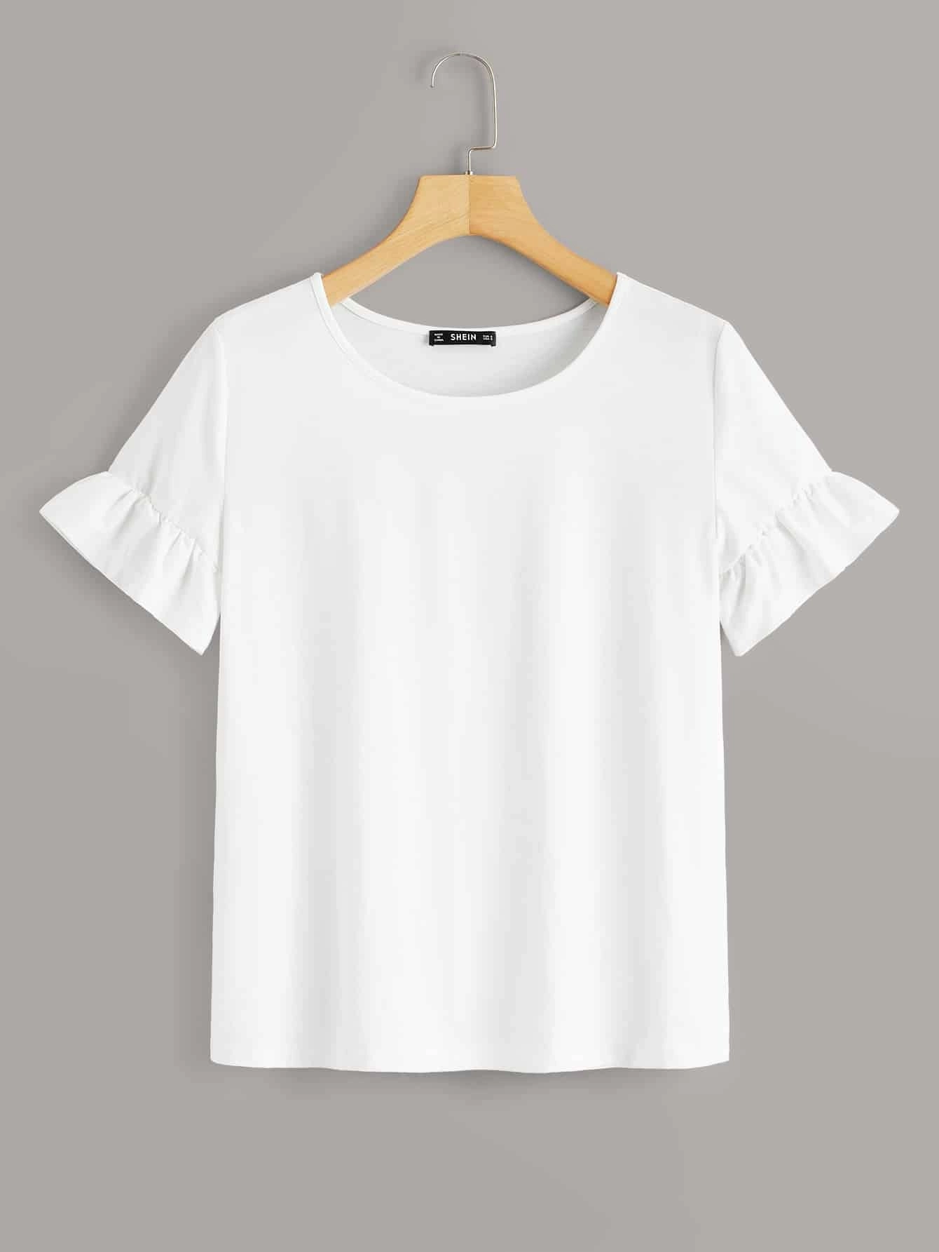 Camiseta s?lida de pu?o fruncido
